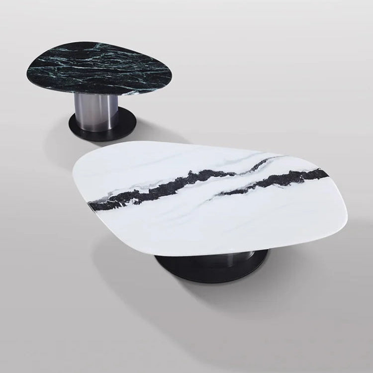 モノクロセラミックセンターテーブルは、洗練されたデザインと実用性を兼ね備えた高級感あふれる家具です。セラミック製の天板は天然大理石のような美しい模様が施され、傷つきにくく耐熱性にも優れています。ステンレス製のベースが安定性と耐久性を提供し、2in1デザインで自由に配置可能です。ファミリーやカップルのリビングルームに最適で、ホテルライクな空間を演出します。一人暮らしの方にもおすすめのサイズ感で、シンプルでモダンなインテリアに調和します。
