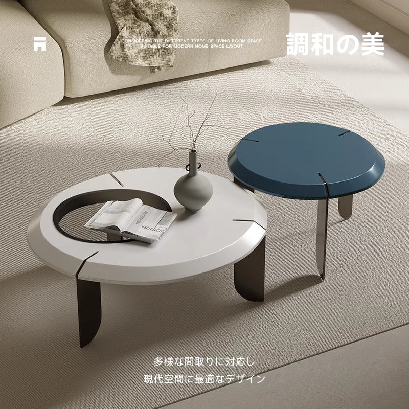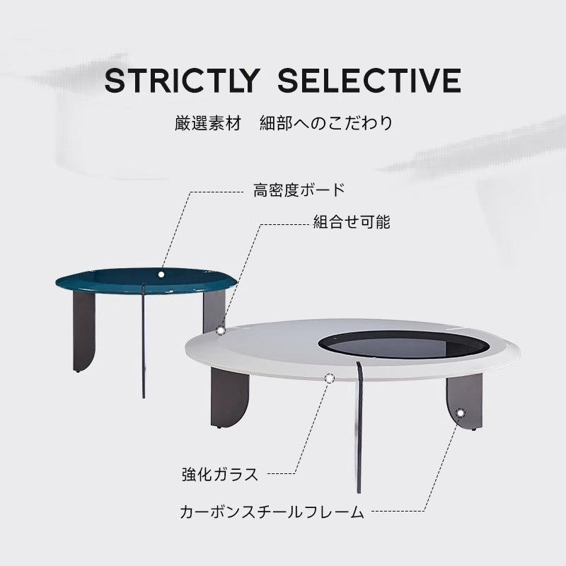 このモジュールセンターテーブルは、現代的なリビングスペースに最適なデザインを提供します。高品質素材を使用し、耐久性と安全性を確保。モジュールデザインにより自由なレイアウトが可能で、様々なインテリアスタイルに調和します。流れるような曲線デザインが空間にアート性と個性をプラスし、リビングをスタイリッシュに演出します。サイズは大きいテーブル直径100cm、高さ34cm、小さいテーブル直径68cm、高さ41cmです。