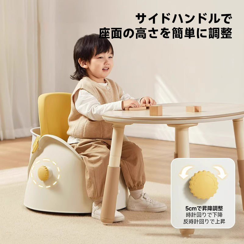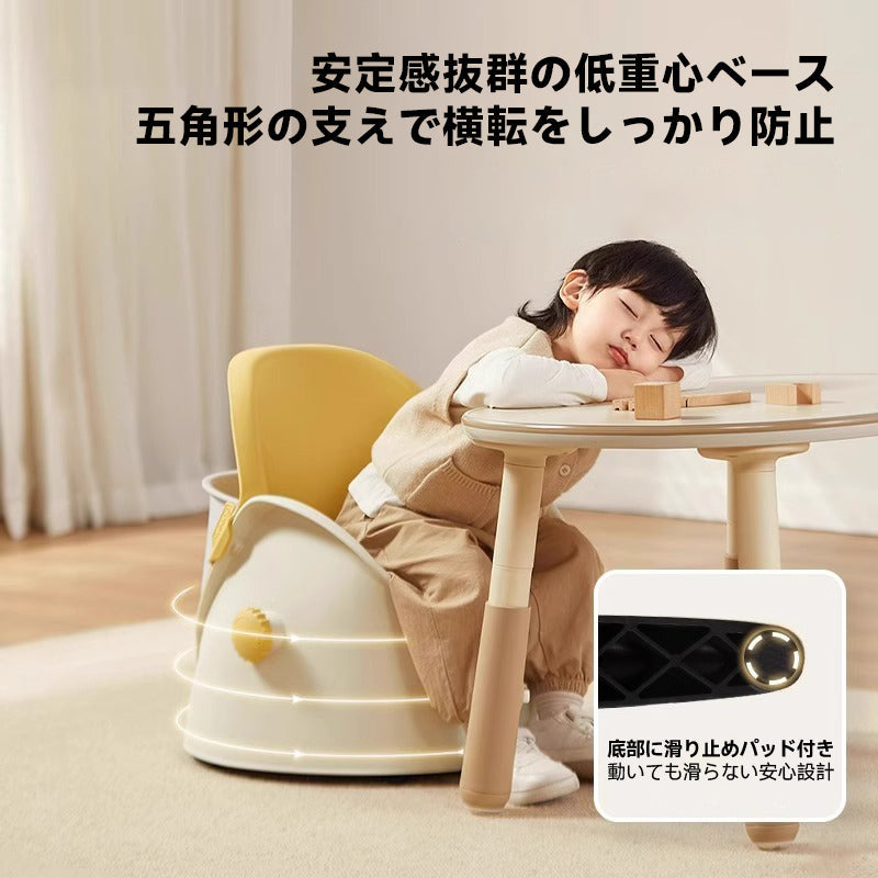 安定サポート付きキッズチェアは、3歳から10歳までのお子様に最適な多機能椅子です。低重心ベースと五角形の支えにより、横転を防止し、滑り止めパッドで動いても安心。座面の高さはサイドハンドルで簡単に調整可能で、5cmの昇降が可能です。背面の収納バスケットには絵本やぬいぐるみを収納できます。環境に配慮したPP素材を使用し、安全性を高めています。快適な座り心地で、成長するお子様に最適な選択肢です。