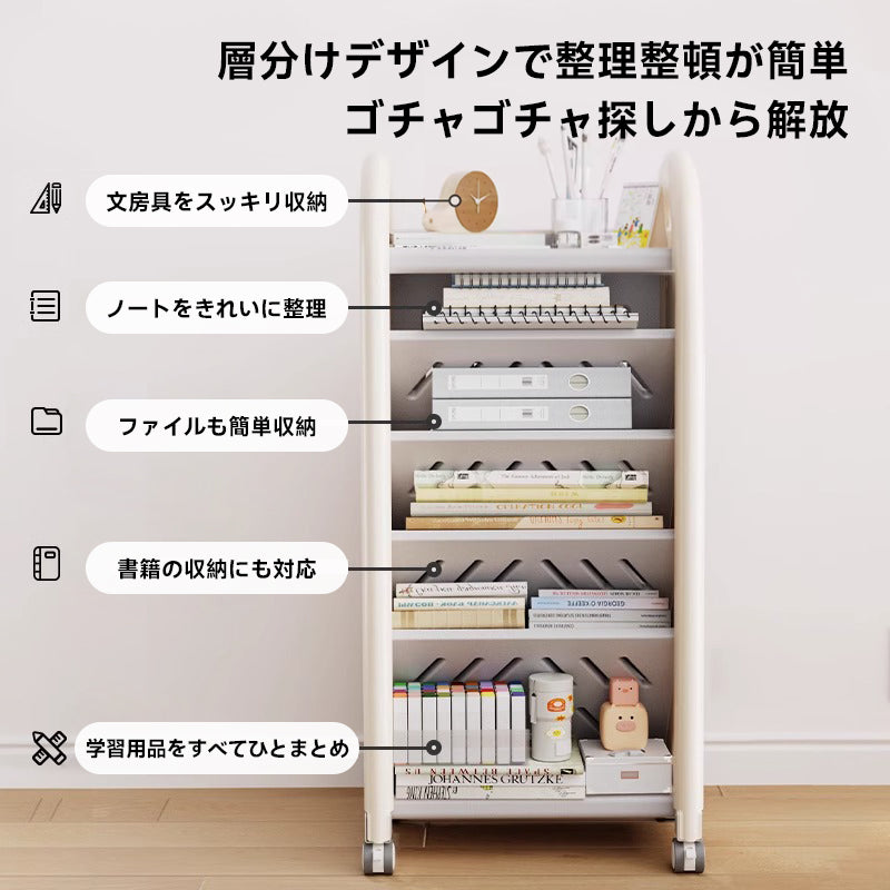 A4サイズ対応キッズ用多機能ラックは、子供部屋に最適な収納ソリューションです。コンパクト設計で限られたスペースを有効活用し、書籍や文房具を整理整頓できます。環境に優しいHDPE素材を使用し、安全性も確保。ストッパー付きキャスターで移動が簡単、45°傾斜で取り出しやすいデザイン。子供たちの学習環境を整え、整理整頓を促進するのに最適なラックです。
