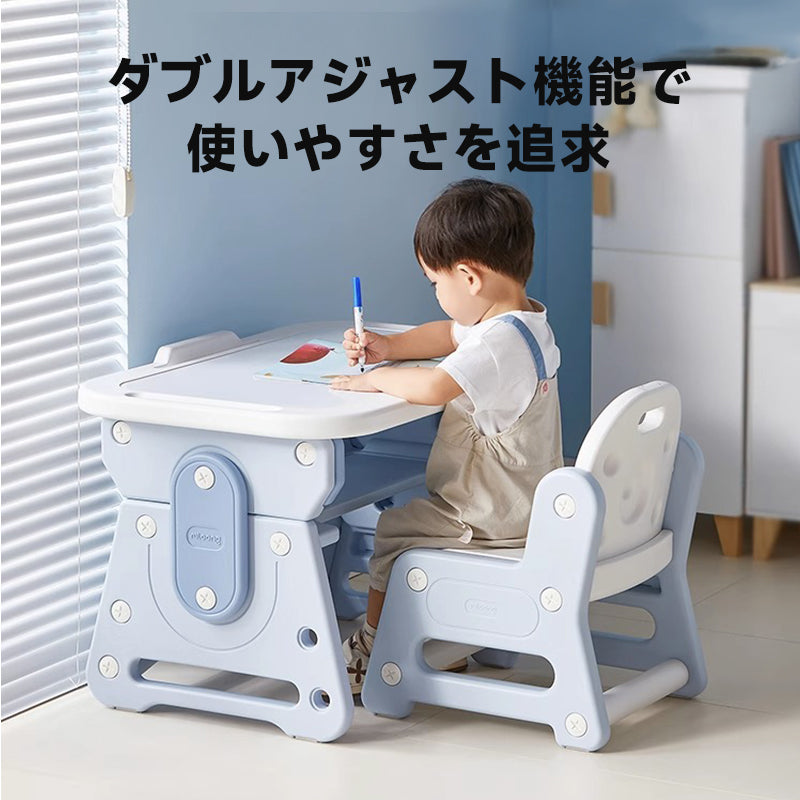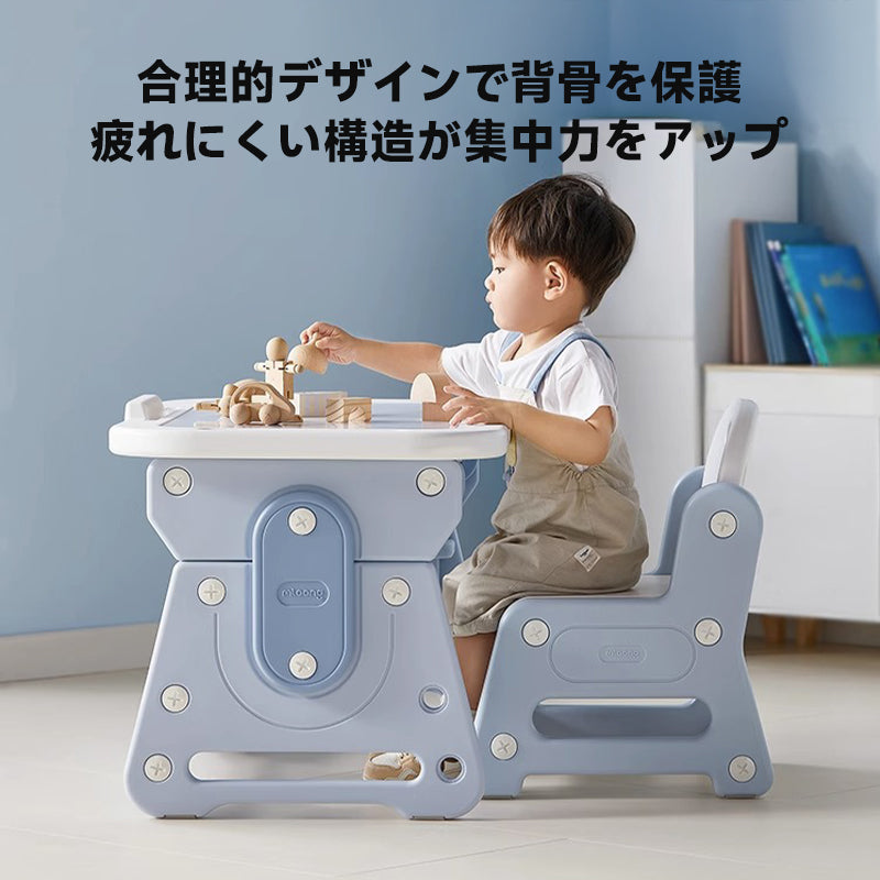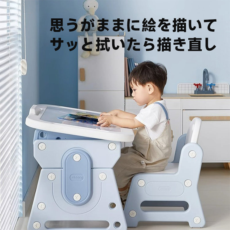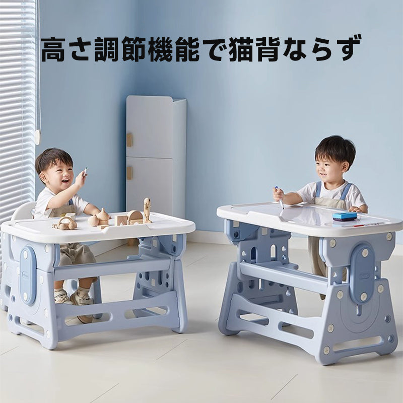キッズ昇降式ドローイングテーブルは、子どもの成長に合わせて高さを調節できる優れたデザインが特徴です。3段階の高さ調節機能とテーブル角度の調節機能により、オンライン学習や絵画、読書に最適です。安全で耐久性のあるHDPE素材を使用し、滑り止め構造で安心して使用できます。大容量のU型ラック付きで収納スペースも充実。グレーとブルーの2色展開で、どんなインテリアにもマッチします。多用途に対応し、健康的な姿勢をサポートします。