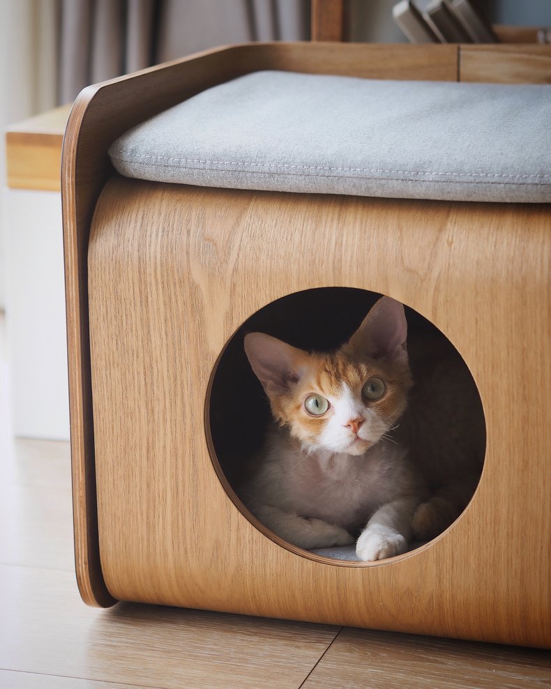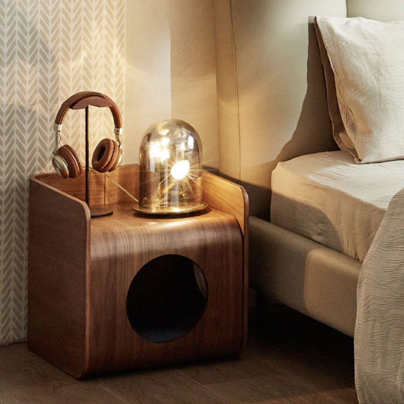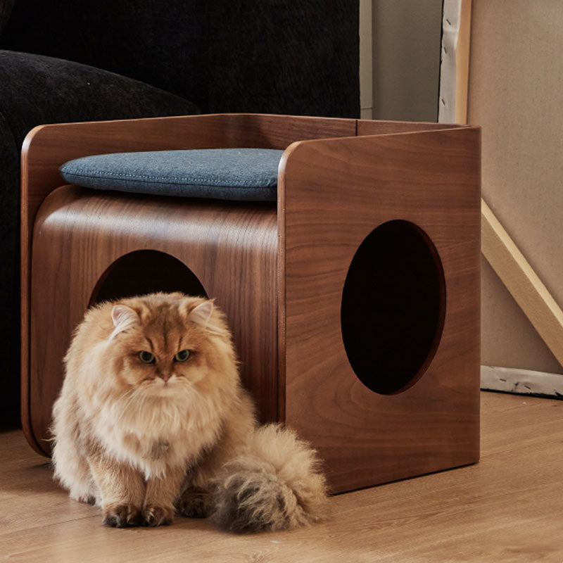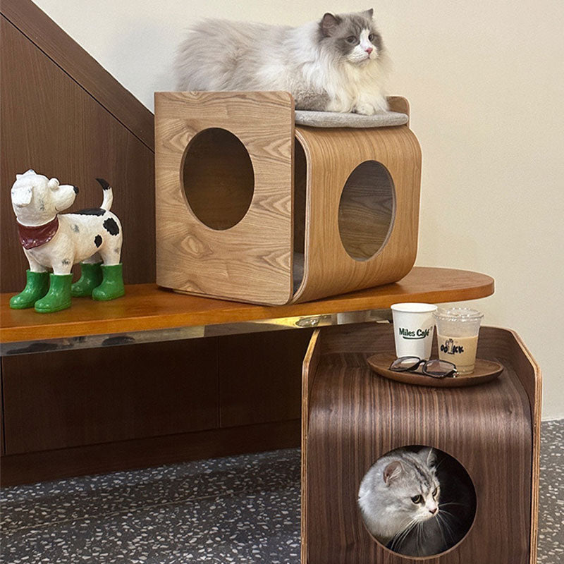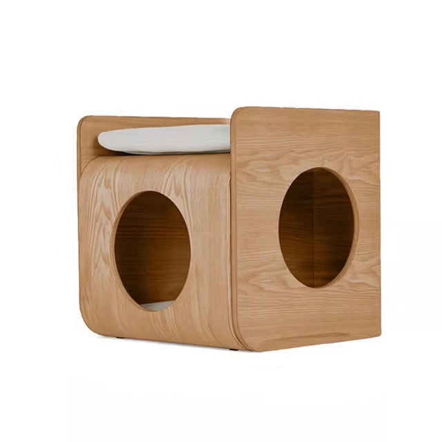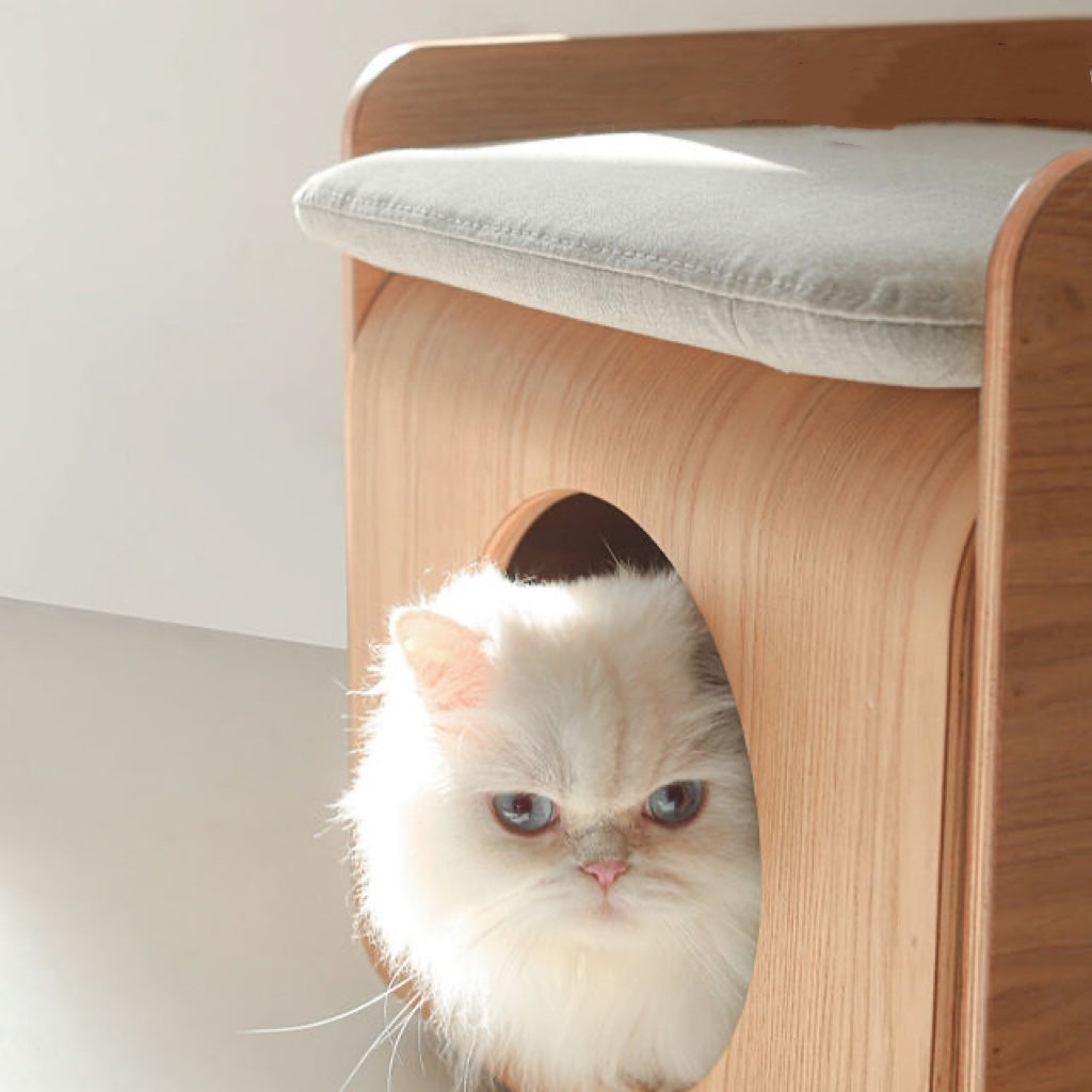 木製ドーム型キャットハウスサイドテーブルは、猫ちゃんのための快適なスペースを提供しつつ、サイドテーブルとしても使用可能な多機能デザインが特徴です。特製ヤチダモと綿麻を使用し、耐久性に優れた構造を持ち、植物性オイルワックスで仕上げられた美しい木目が魅力です。組み立て不要で、クッションは取り外し可能で丸洗いでき、お手入れも簡単です。自然色、くるみ色、黒木色の3色展開で、お部屋の雰囲気に合わせて選べます。幅40cm x 奥行40cm x 高さ40cmのサイズで、多頭飼いのご家庭にもおすすめです。