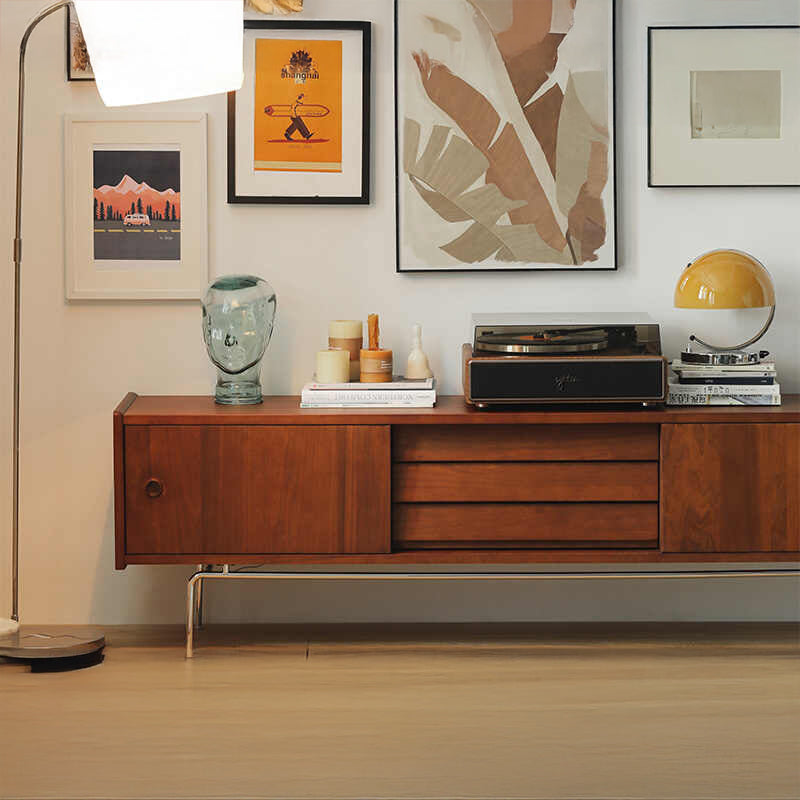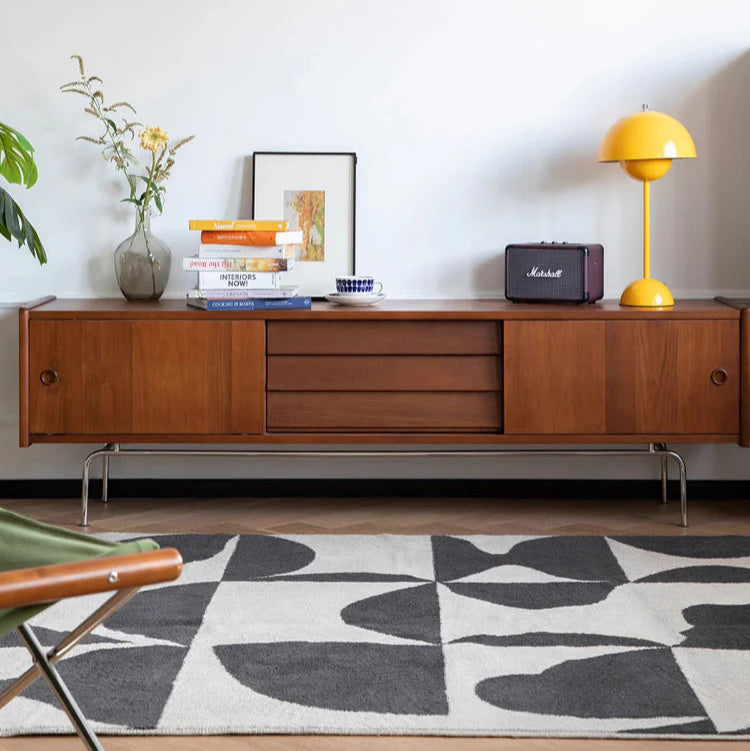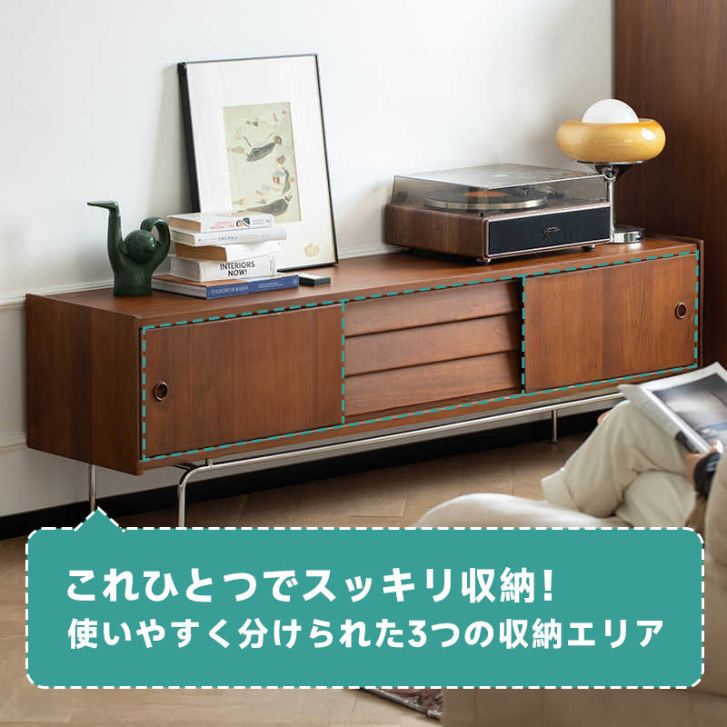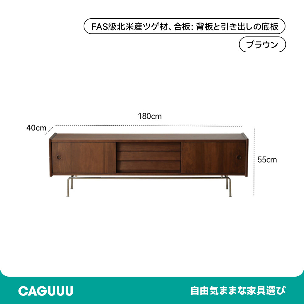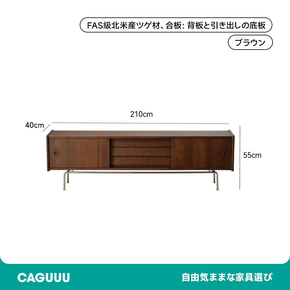ツゲ材を使用した北欧レトロテレビボードは、FAS級北米産ツゲ材を使用し、上質な素材感と耐久性を兼ね備えています。シンプルで洗練されたデザインは、どんなインテリアにも調和し、リビングを一層引き立てます。大容量収納、調節可能な棚板、スライド式扉などの機能性に優れ、ステンレス製の脚部は240kg以上の重さに耐えられます。細部へのこだわりと清掃のしやすさも魅力です。150cm、180cm、210cmの3サイズ展開で、お部屋の広さに合わせて選べます。