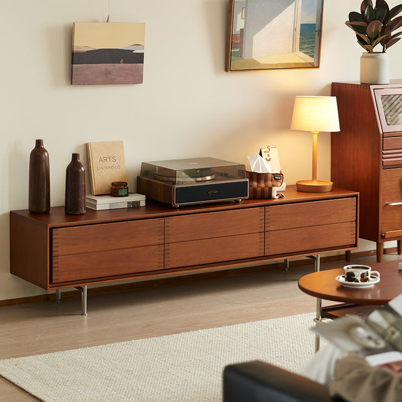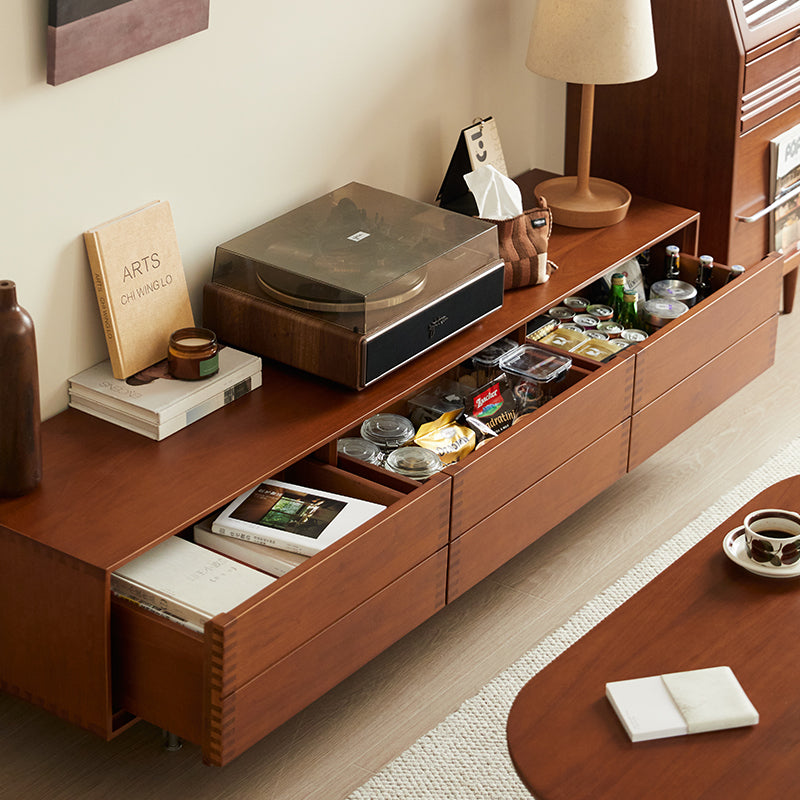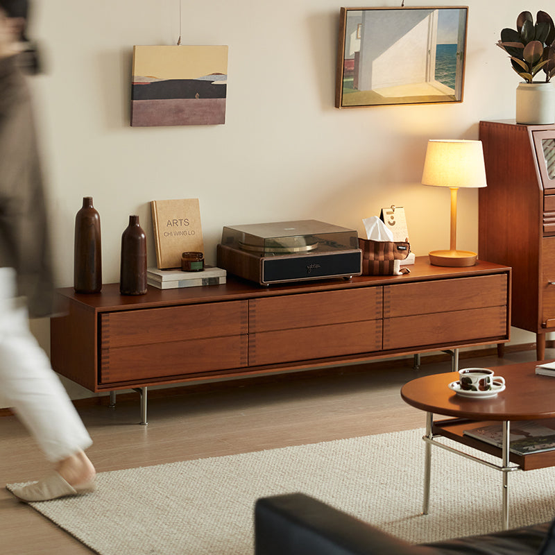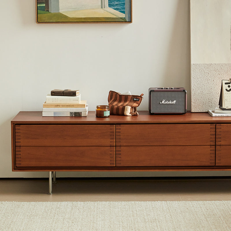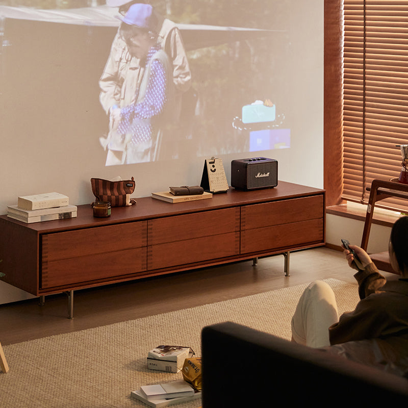 北欧クラシックテレビボードは、FAS級北米輸入のツゲ材を使用した高級感溢れるデザインが特徴です。耐久性と美しさを兼ね備えたこのテレビボードは、180cmと210cmのサイズで提供され、シンプルで洗練されたデザインがどんなインテリアにもマッチします。3つの引き出しによる大容量の収納スペース、隠しハンドルと静音仕様のスムーズなレール、配線穴を活用したケーブル収納など、機能性も抜群です。H型構造の脚部デザインにより600kg近くの耐荷重を実現し、安定性と耐久性を提供します。地面から15cmの高さを確保し、掃除がしやすく、ホコリが溜まりにくい設計です。