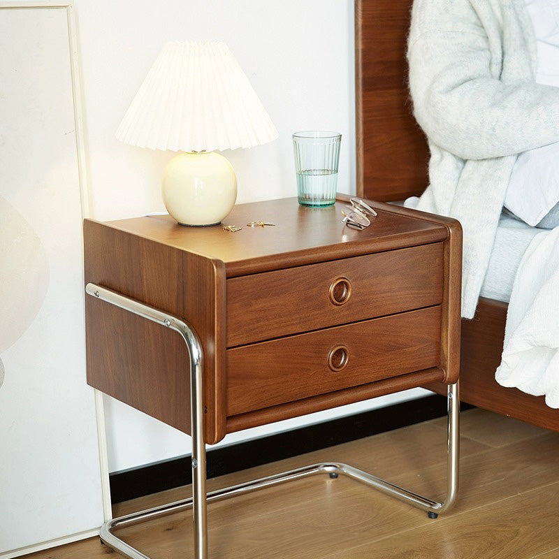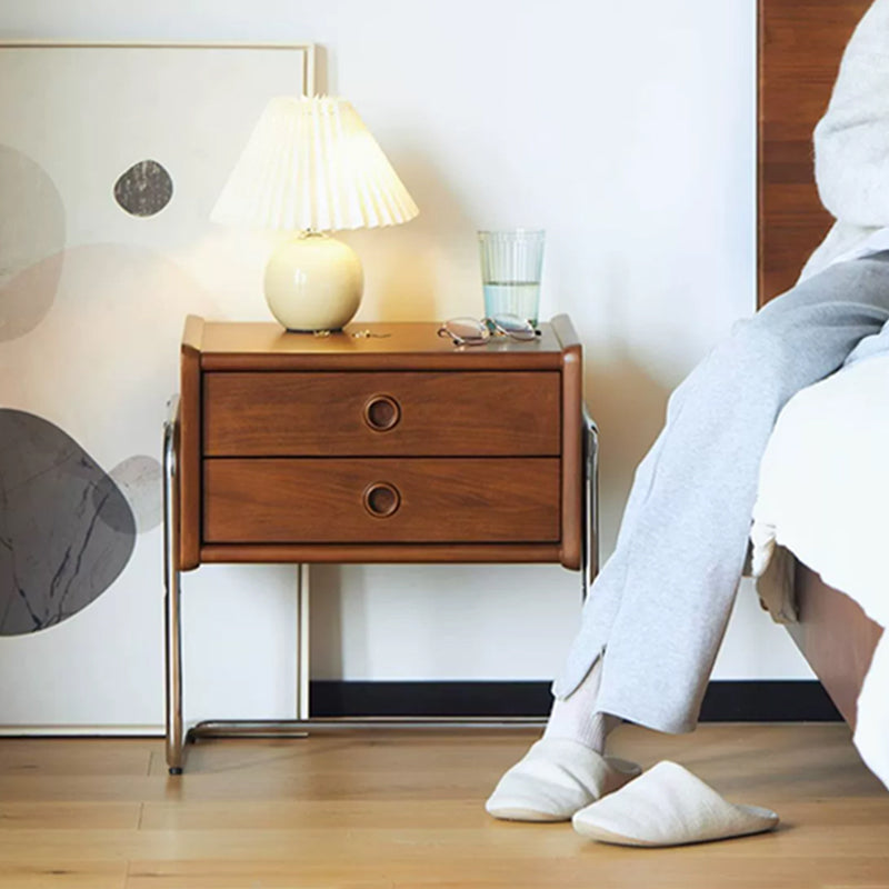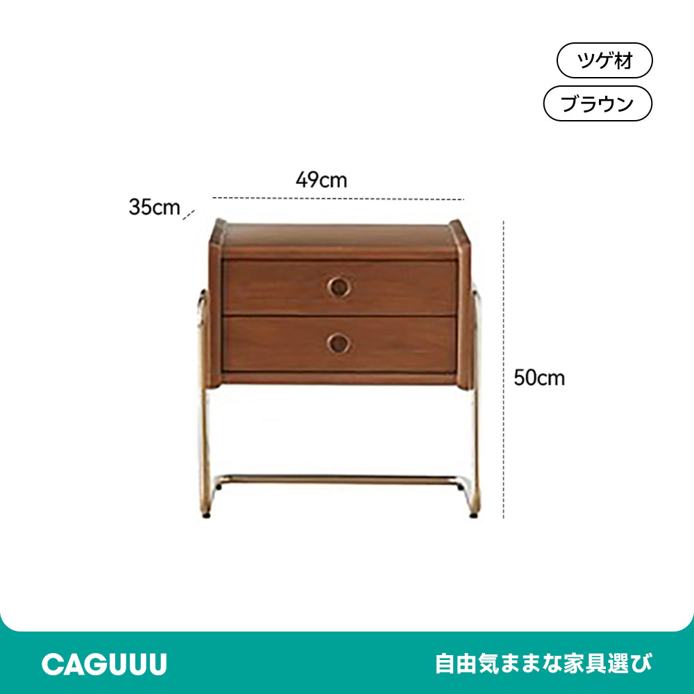 ツゲ材 ステンレス脚ベッドサイドキャビネット