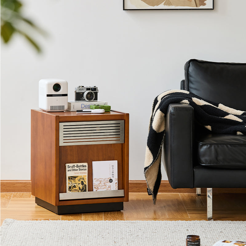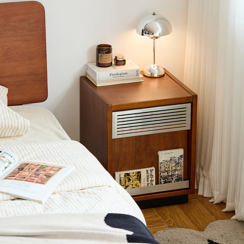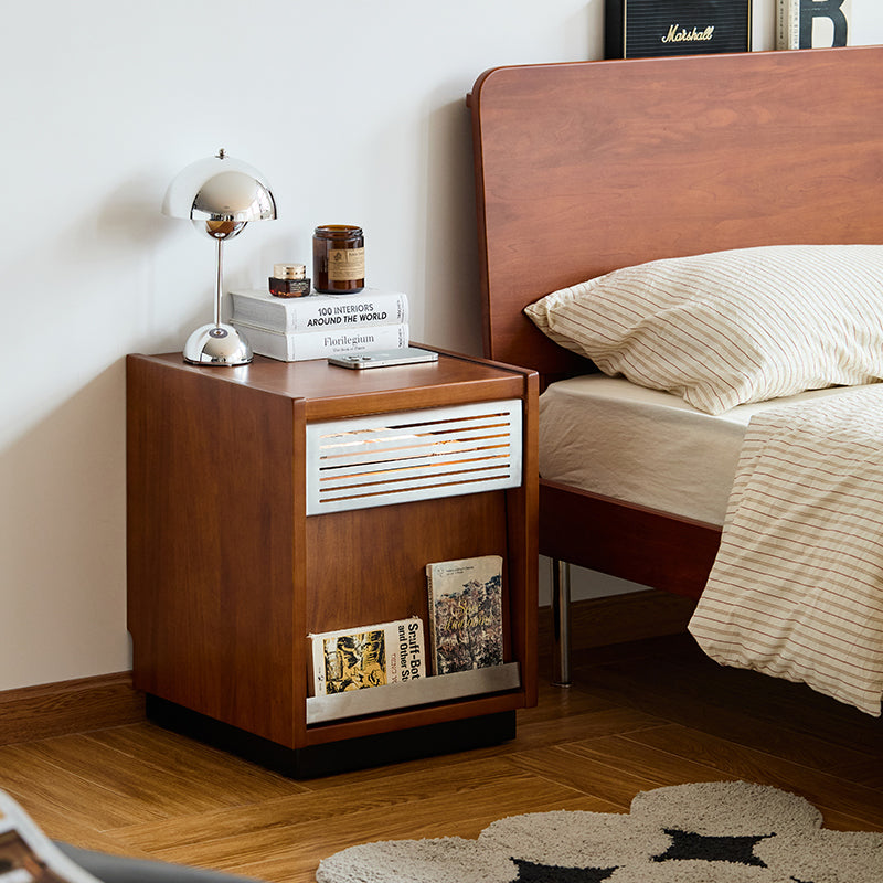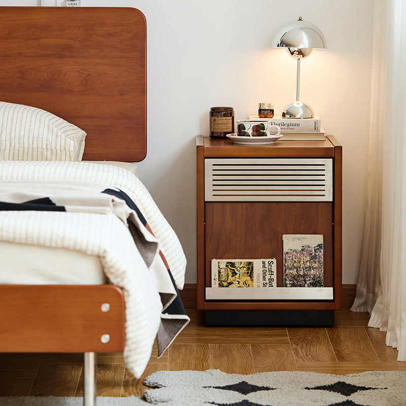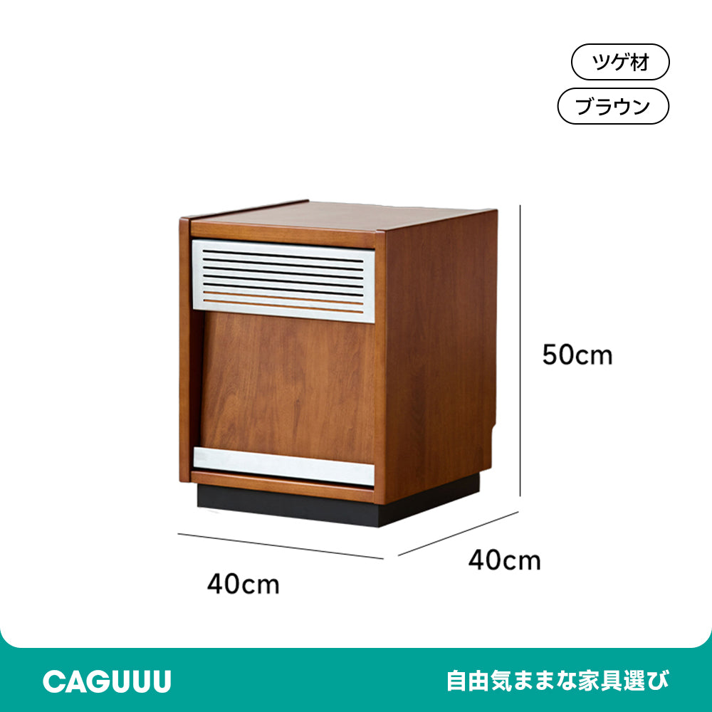 ツゲ材 スチールメッシュベッドサイドキャビネット
