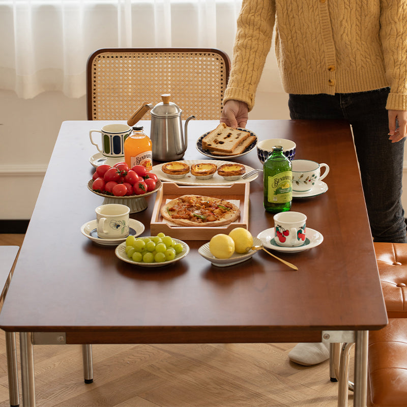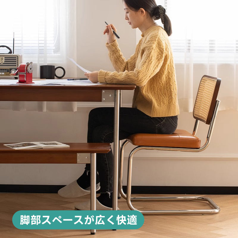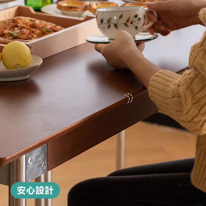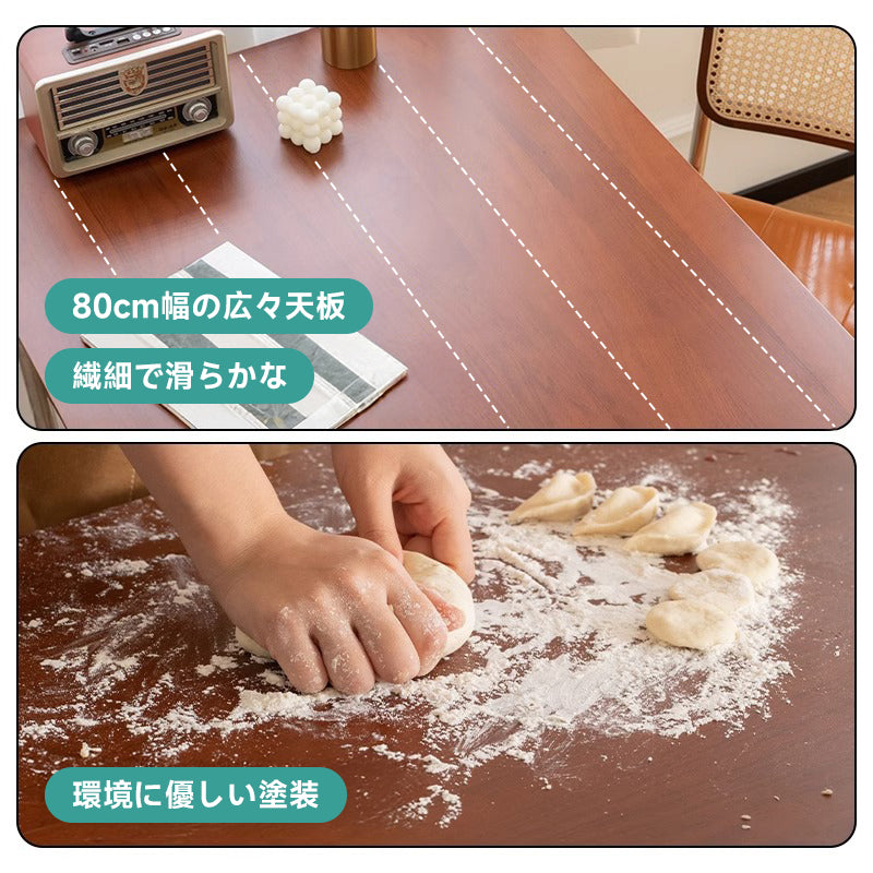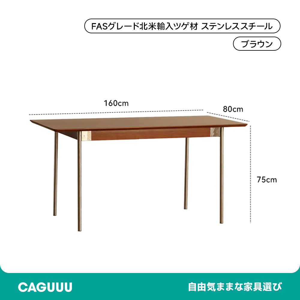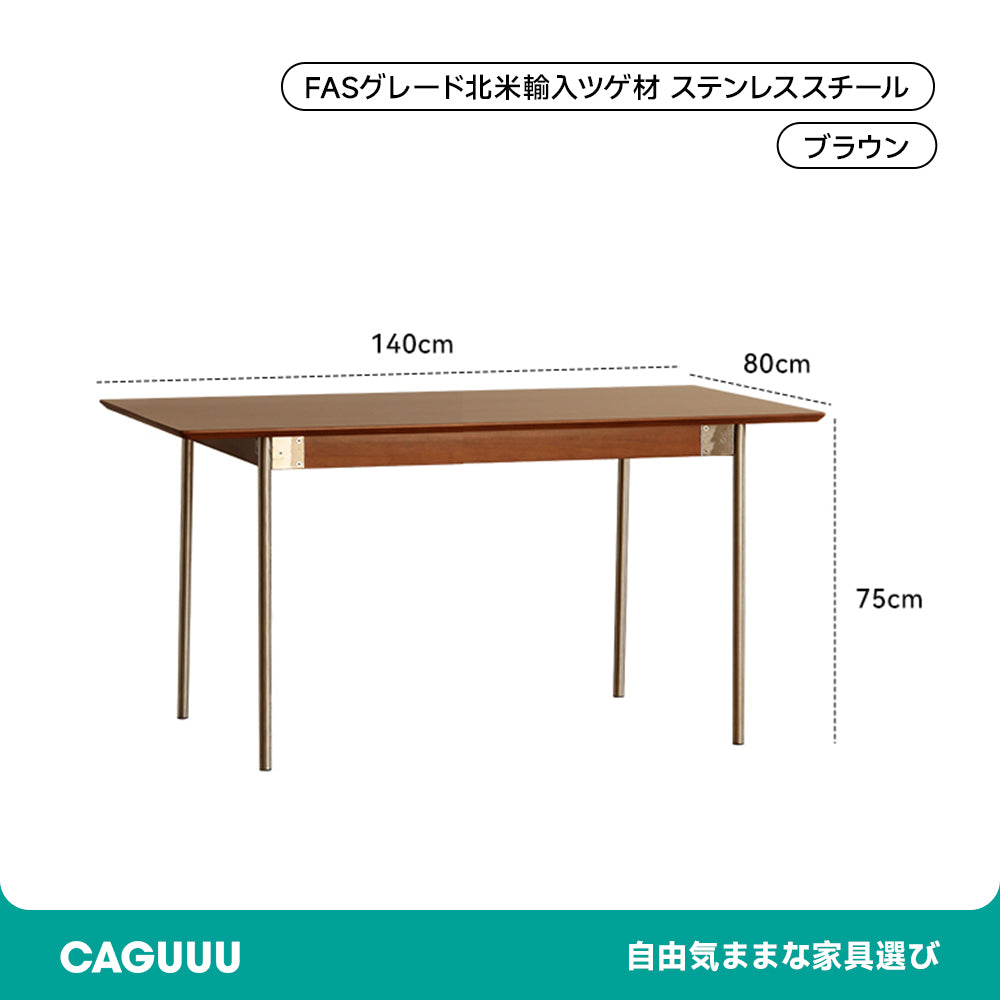 高品質なFASグレードの北米産ツゲ材を使用したステンレス脚木製ダイニングテーブル。美しい木目と優れた耐久性を持つツゲ材は、環境に優しい塗装で自然な質感を保ちます。幅80cmの広々とした天板は、家族や友人との食事や作業に最適です。4つのサイズオプションと168kg以上の耐荷重で、様々なニーズに対応します。シンプルで飽きのこないデザインは、どんな部屋にも調和し、日常使いに最適です。