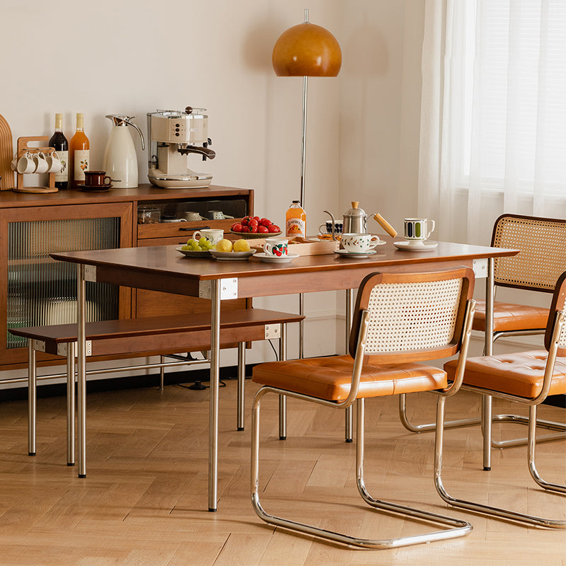ツゲ材 ステンレス脚木製ダイニングテーブル