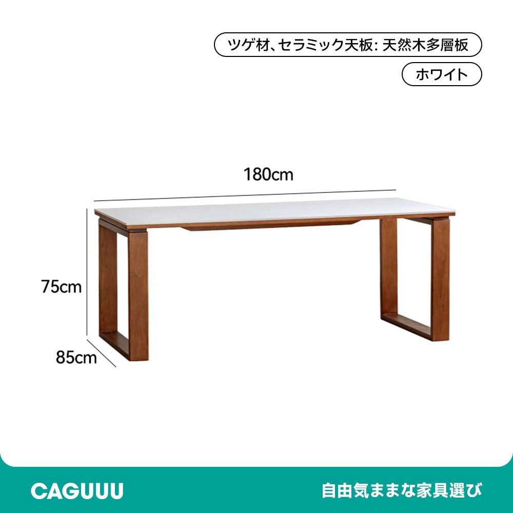 ツゲ材の口の字型脚セラミックダイニングテーブルは、北米産の高品質ツゲ材と耐熱性に優れたセラミック天板を使用し、耐久性と美しさを兼ね備えたデザインが特徴です。500kg以上の耐荷重で安定感抜群、広い天板はダイニングやオフィス、クラフトスペースとして多用途に活用可能。メンテナンスも簡単で、どんなインテリアにも自然に溶け込みます。長さ160cmまたは180cm、幅85cm、高さ75cmのサイズで、家族や友人との快適な時間を提供します。