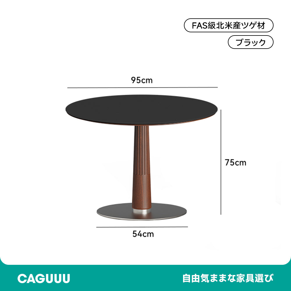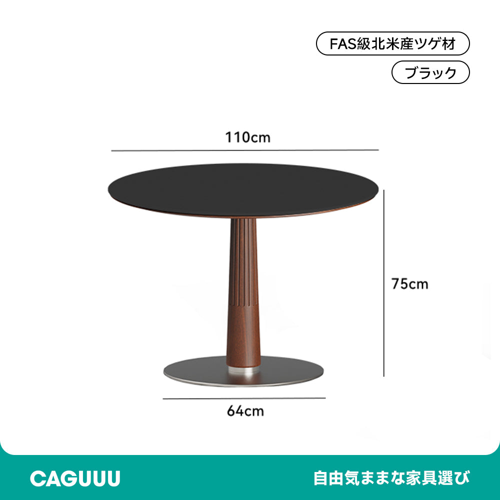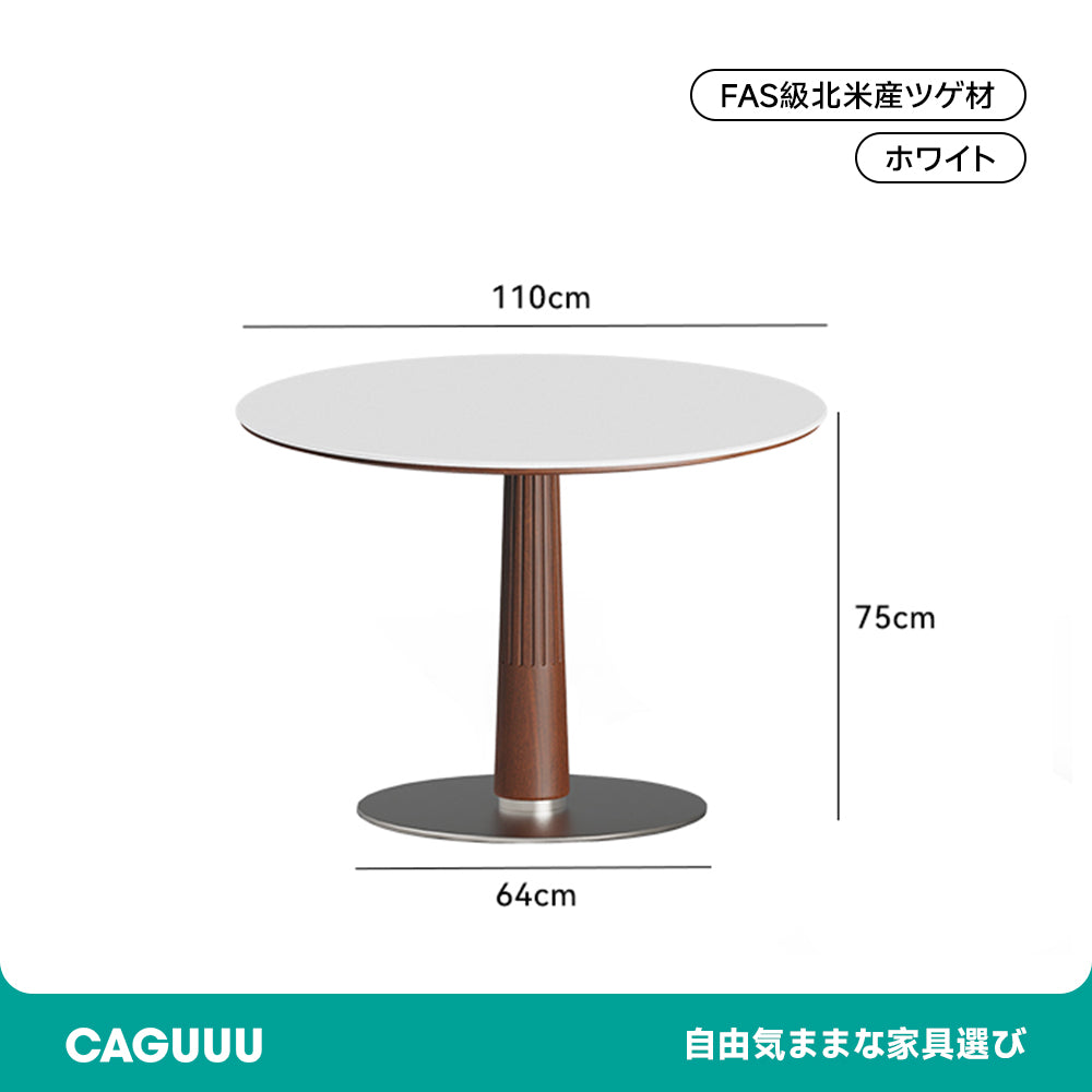 FAS級北米産ツゲ材を使用したセラミック木製ラウンドテーブルは、シンプルでモダンなデザインが特徴です。耐久性と美しさを兼ね備えた高品質な素材により、どんなインテリアにもマッチし、食事の時間をスタイリッシュに演出します。円形のデザインは空間を効率的に使用でき、ドーリア式のテーブル脚が強度と美しさを両立。直径95cmと110cmの2サイズ、ホワイト、ブラック、ブラウンの3色展開でお部屋の雰囲気に合わせて選べます。掃除がしやすく、日常の使用に最適です。
