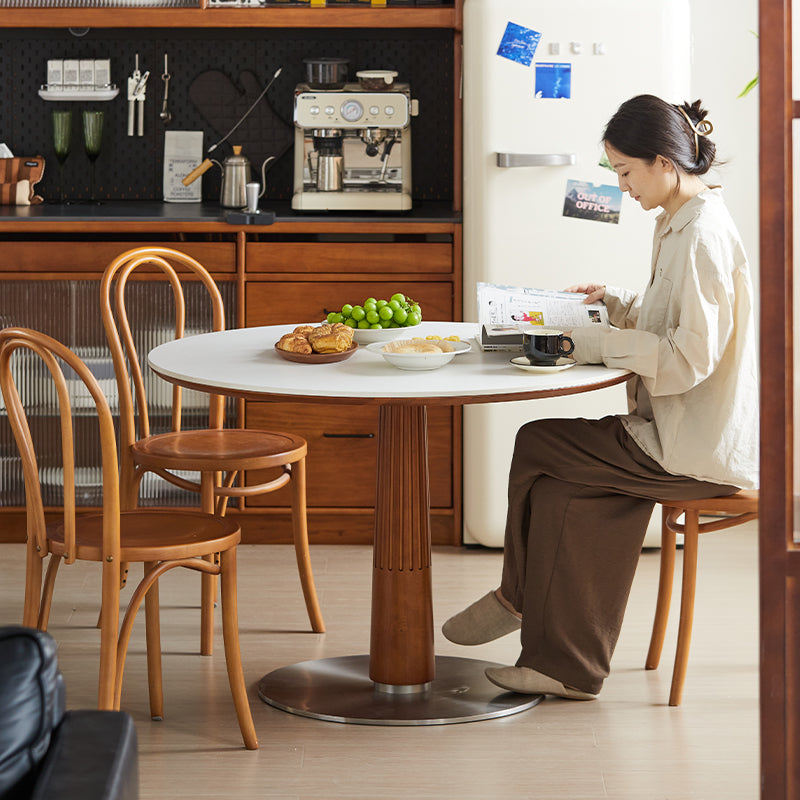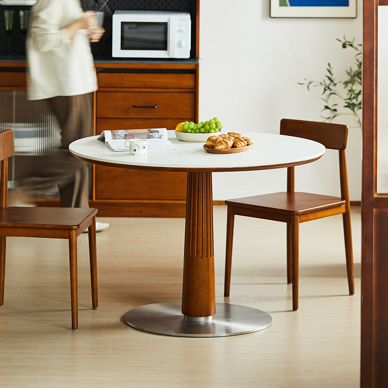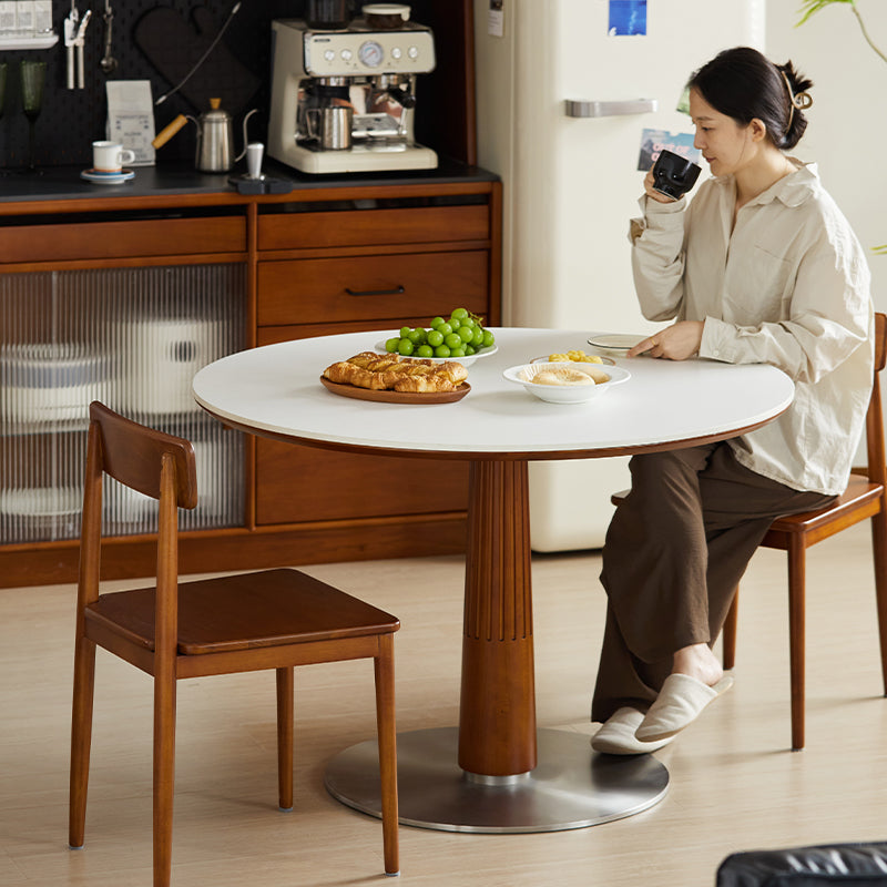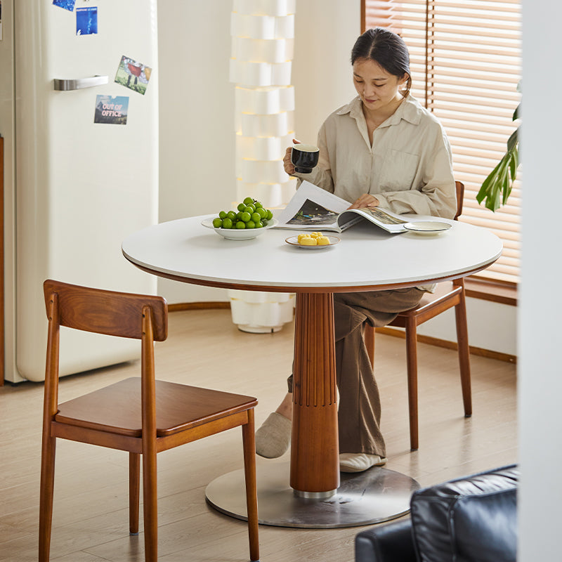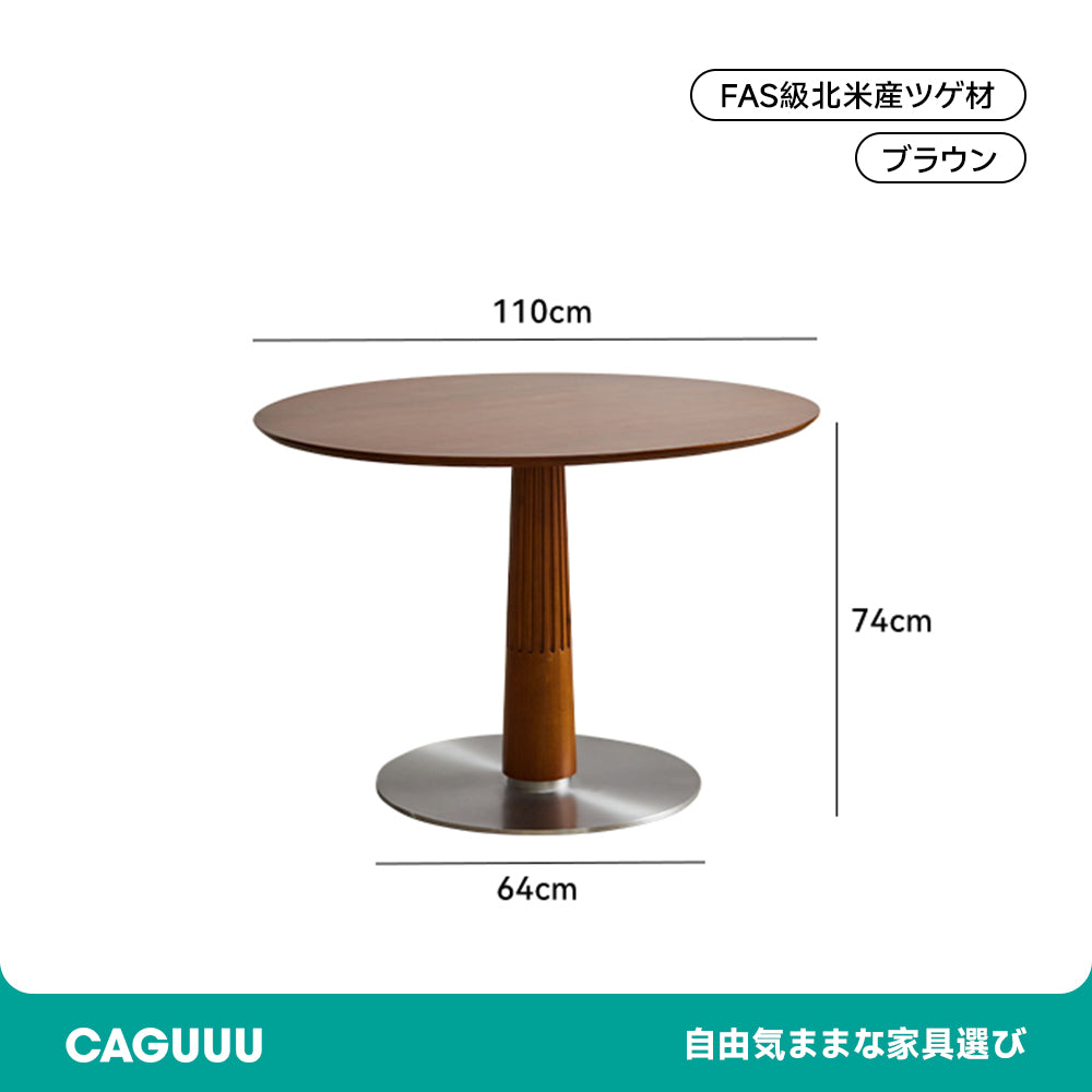 FAS級北米産ツゲ材を使用したセラミック木製ラウンドテーブルは、シンプルでモダンなデザインが特徴です。耐久性と美しさを兼ね備えた高品質な素材により、どんなインテリアにもマッチし、食事の時間をスタイリッシュに演出します。円形のデザインは空間を効率的に使用でき、ドーリア式のテーブル脚が強度と美しさを両立。直径95cmと110cmの2サイズ、ホワイト、ブラック、ブラウンの3色展開でお部屋の雰囲気に合わせて選べます。掃除がしやすく、日常の使用に最適です。