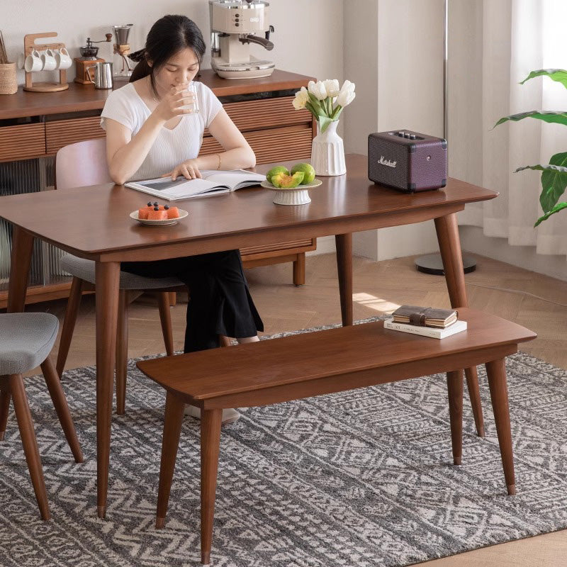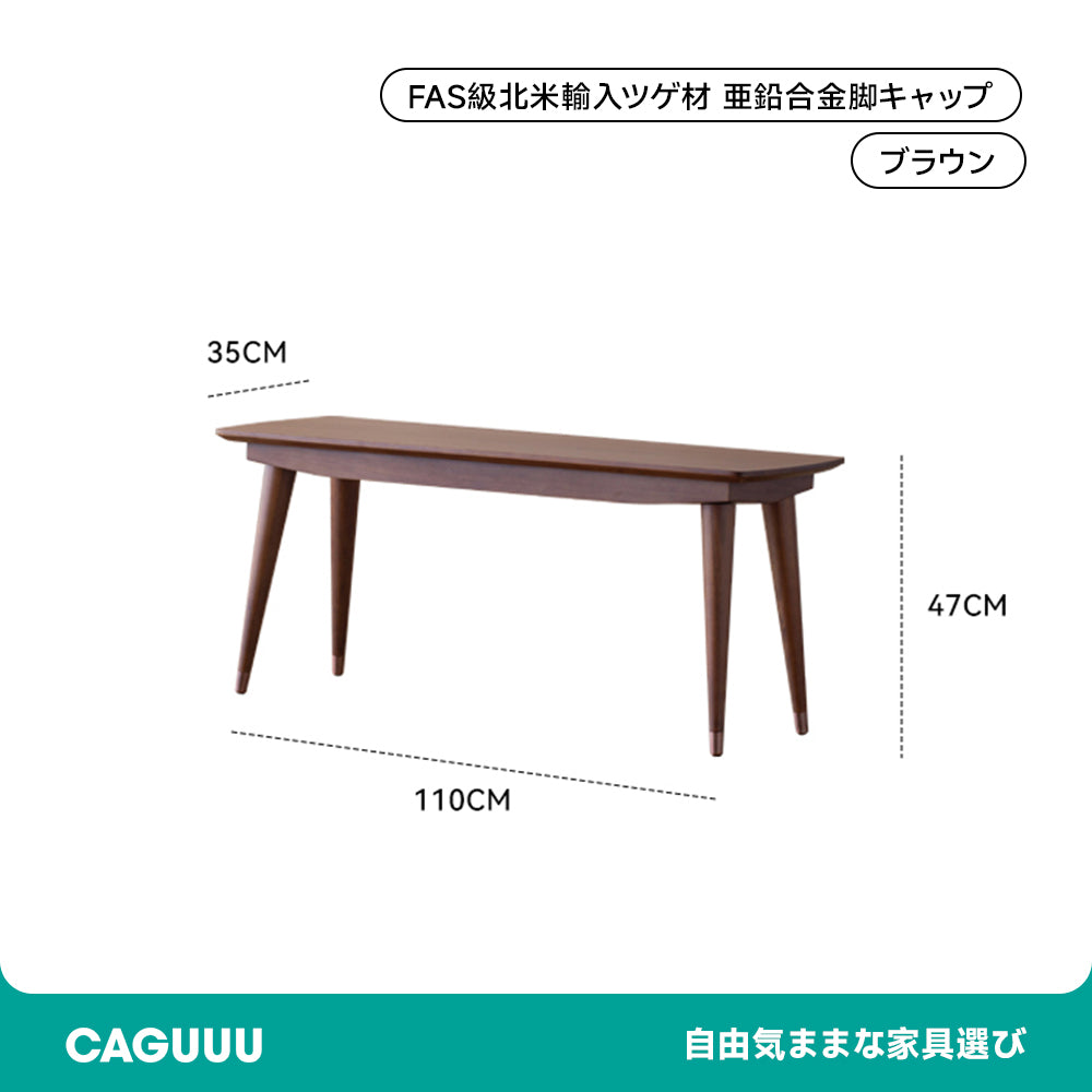 ツゲ材天然木ダイニングベンチは、FAS特級ツゲ材を使用した耐久性と美しい木目が特徴のベンチです。シンプルで洗練されたデザインは、どんなインテリアにもマッチし、玄関や窓際、ダイニングルームなど様々な場所で活躍します。座面の幅は35cmでゆったりと座ることができ、三角形の構造が安定性を高めます。亜鉛合金製の脚カバーが床を傷から守り、丁寧に磨き上げられた滑らかな表面が日常生活に優しい感触を提供します。