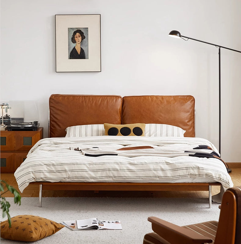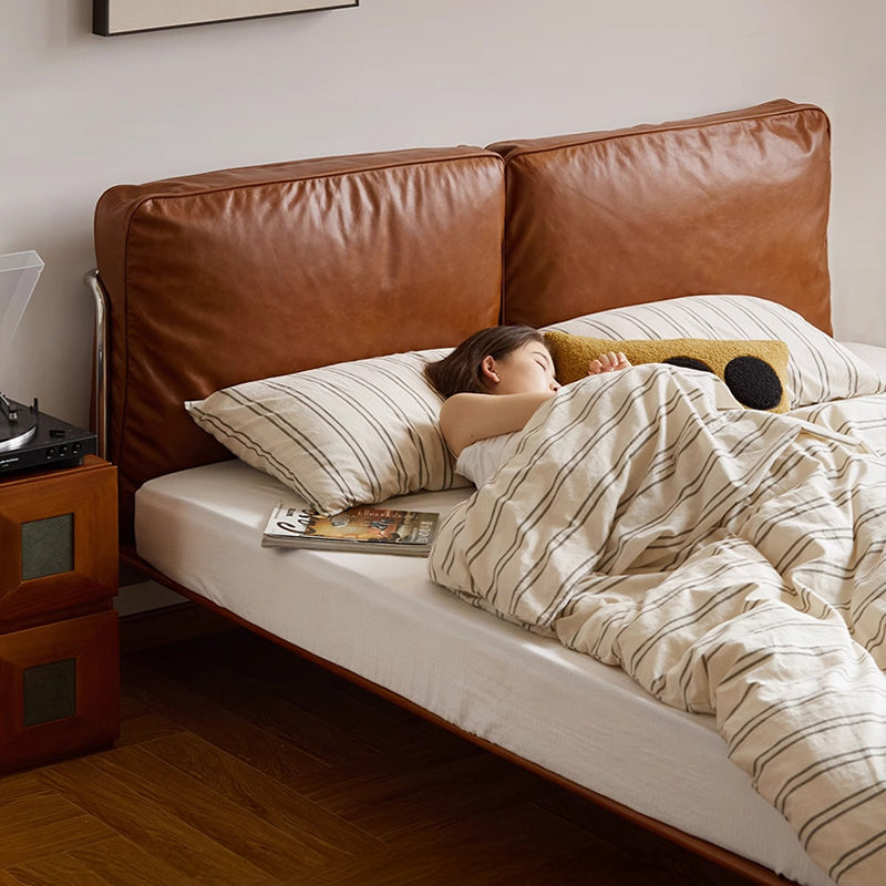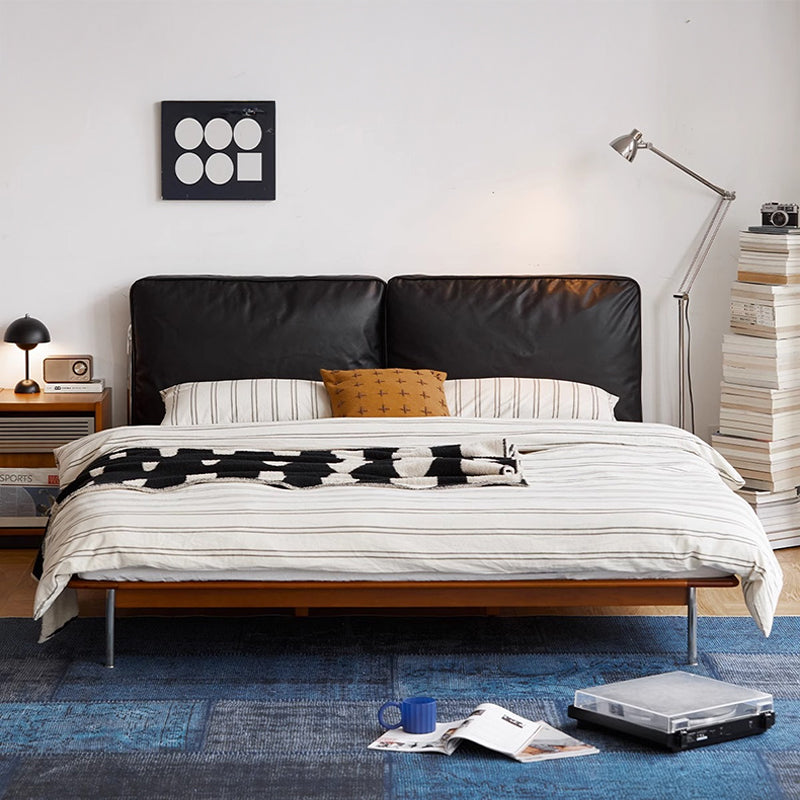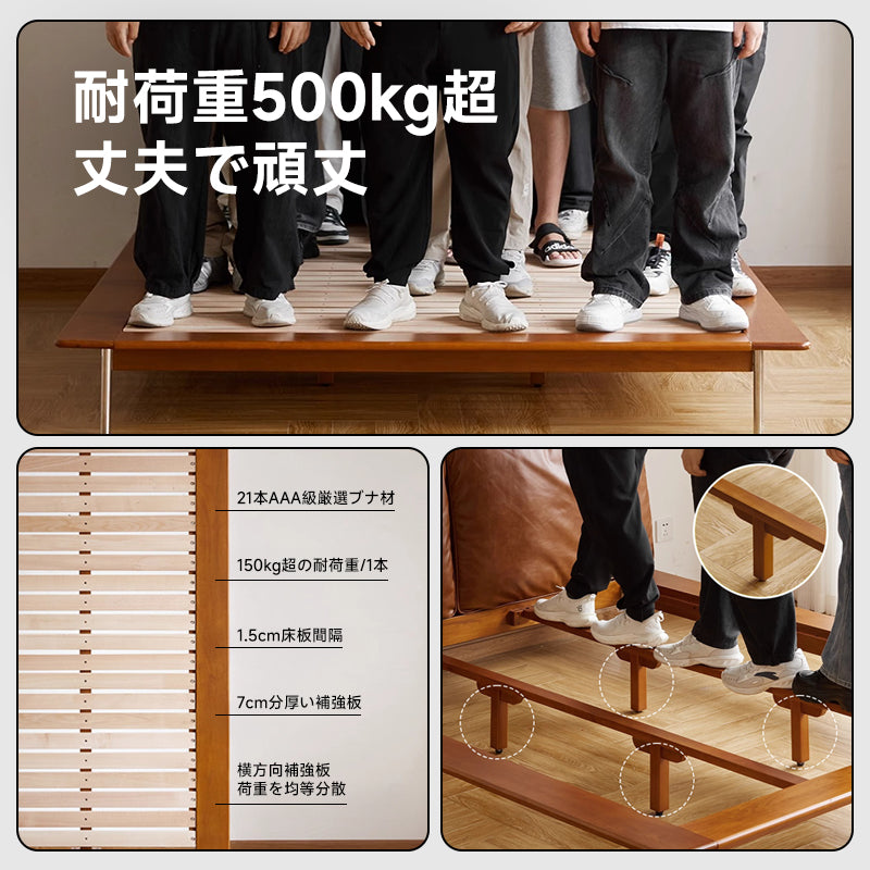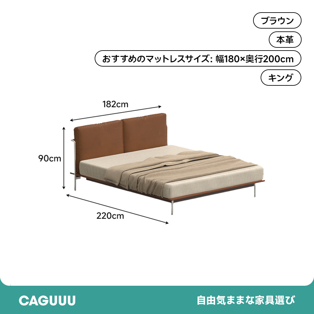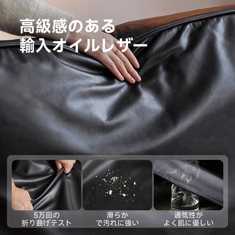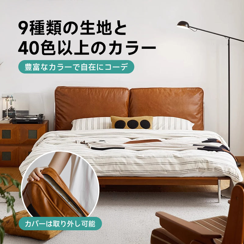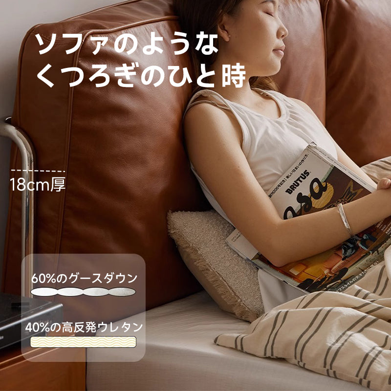 クッションヘッドボード付きベッドは、快適さとデザイン性を兼ね備えた最高級の選択肢です。18cmの厚みを持つヘッドボードは、60%のグースダウンと40%の高反発ウレタンを使用し、柔らかく包み込むような心地よさを提供します。高級感のあるオイルレザーは滑らかで汚れに強く、通気性が良いため肌に優しいです。耐荷重500kg超の頑丈なフレームは、8本脚とダブルフレームで圧力を均等に分散。豊富なカラーバリエーションと取り外し可能なカバーで、インテリアに合わせた自由なコーディネートが可能です。ベッド下の収納スペースは掃除ロボットも通過しやすい設計です。