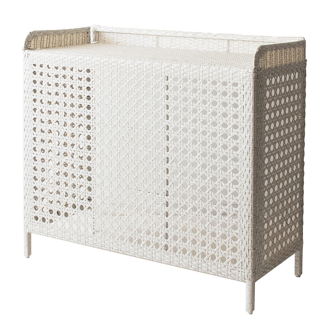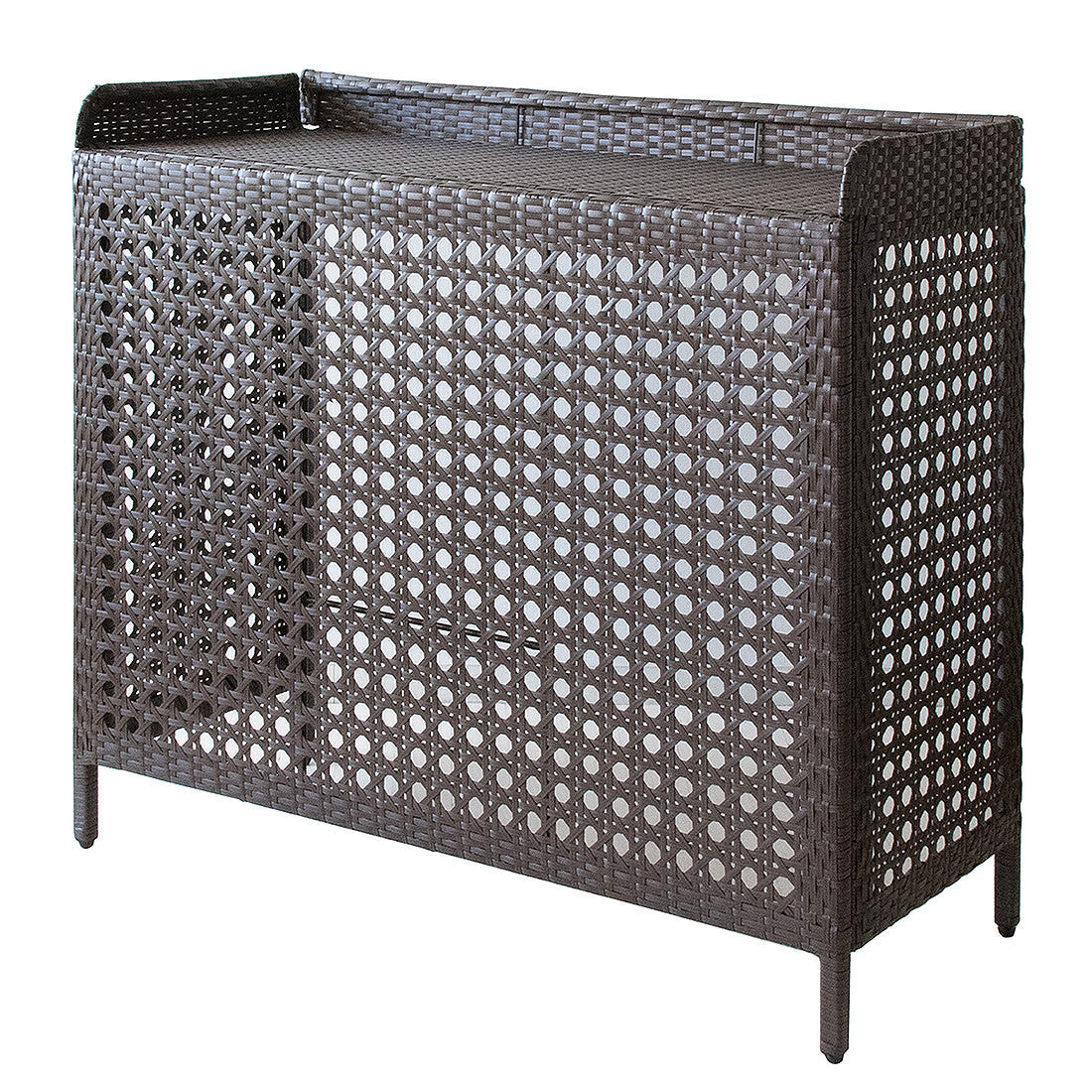 ラタン調室外機カバー「Esterno」は、エレガントでモダンなデザインが特徴の室外機カバーです。人工ラタン製で耐久性と耐水性に優れ、雨風に強く腐食しにくい素材を使用。通気性が良く、室外機の効率を損なわない設計で湿気を防ぎます。工具不要で簡単に組み立てられ、軽量で持ち運びも簡単。直射日光を防ぎ、室外機の熱効率を高めることで節電効果も期待できます。天板部分には便利な棚があり、植物やガーデニング用品を置けるスペースを有効活用。庭やバルコニーに設置することで、室外機をおしゃれに隠し、生活感を一新します。ホワイトとダークブラウンのカラーバリエーションがあり、幅95cm、奥行40cm、高さ85cmのサイズです。
