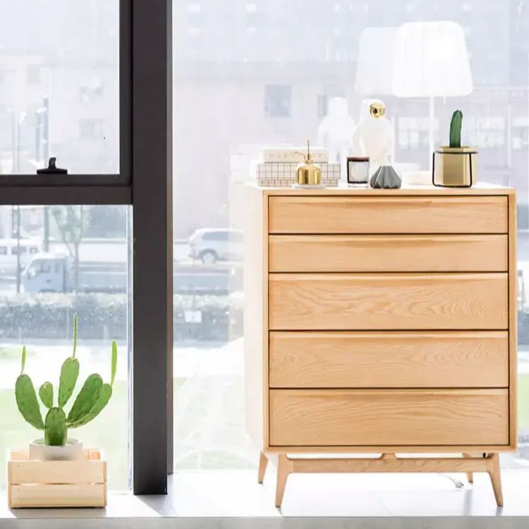 天然木シンプルモダン5段チェスト