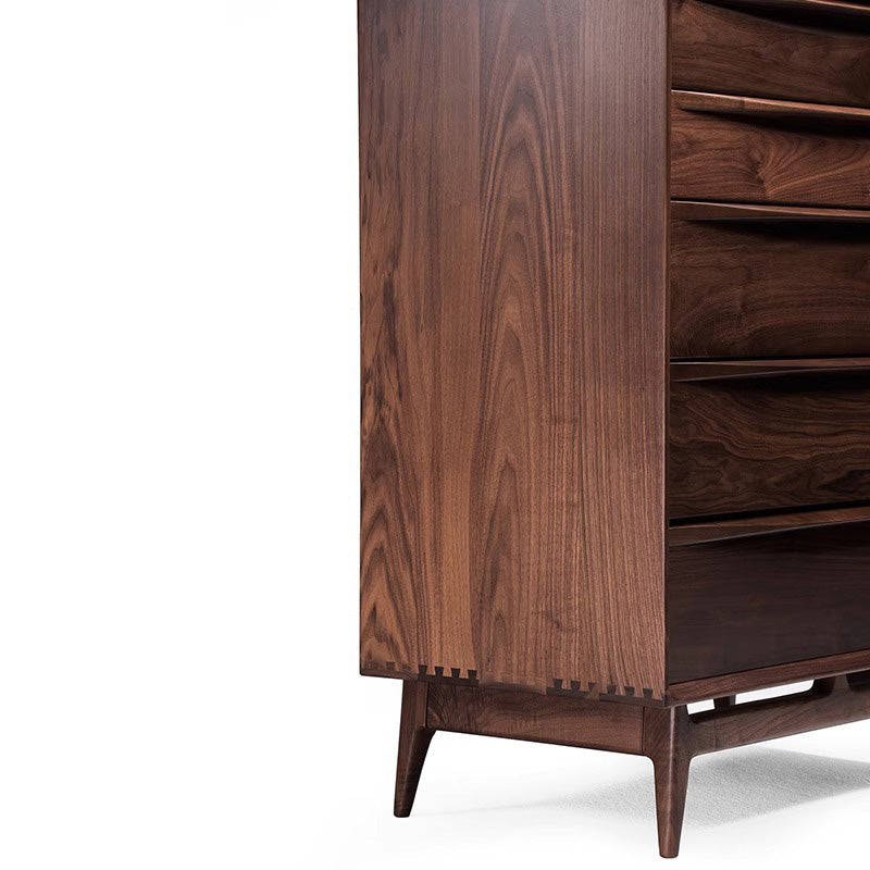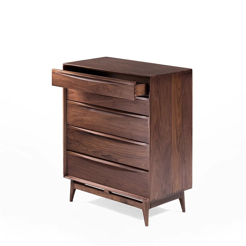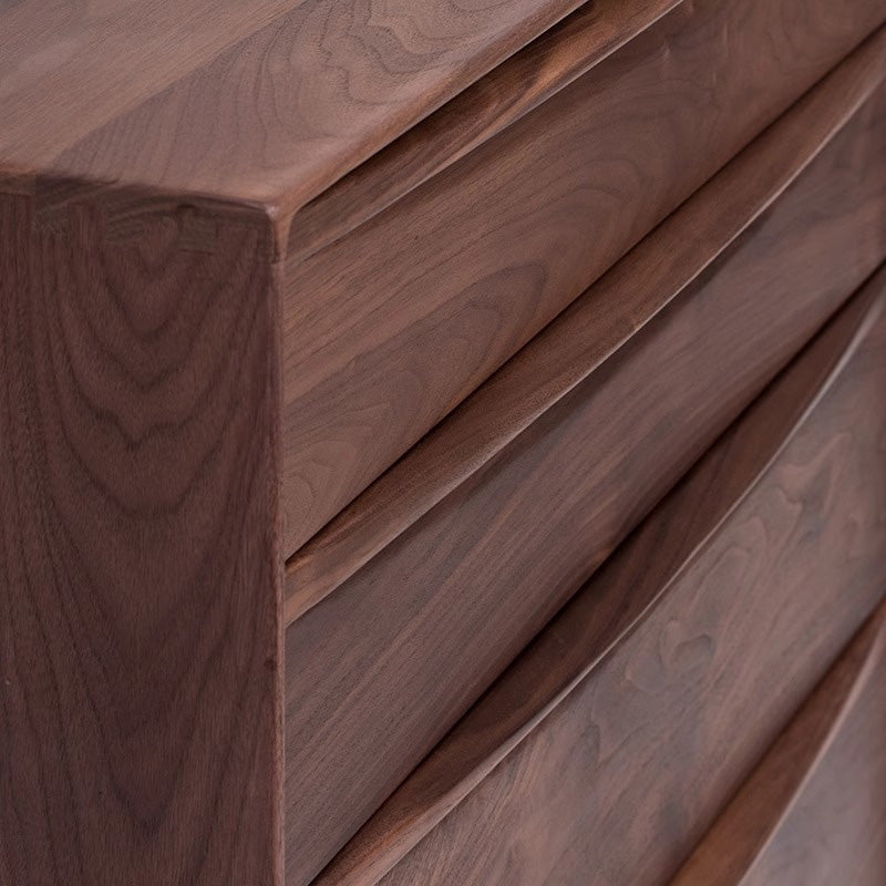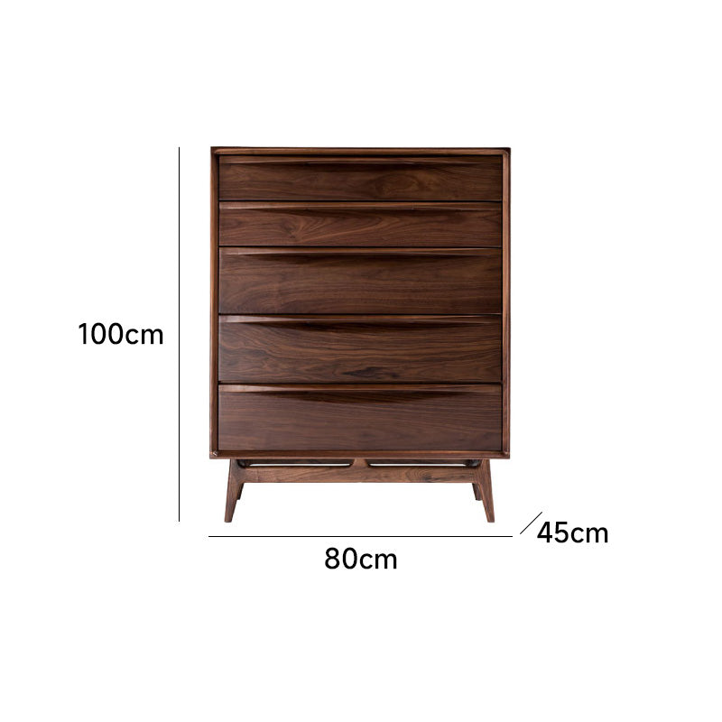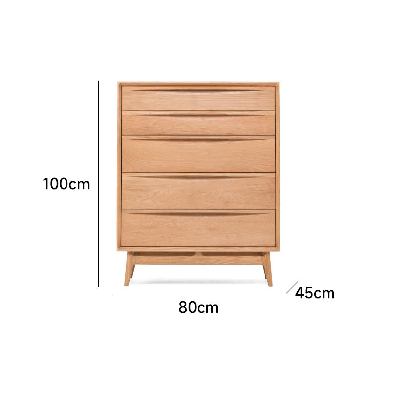 天然木シンプルモダン5段チェストは、高品質なブラックウォールナット、ホワイトオーク、ブナ材から選べる上質なチェストです。曲線を描くスムーズなデザインが特徴で、特別な存在感と温かみを演出。5段の引き出しで効率的な収納を実現し、高品質なスライドレールで静かな開閉が可能です。幅80cm、奥行45cm、高さ100cmのコンパクトサイズで、どんなインテリアにもマッチし、上品さと実用性を兼ね備えています。組み立て式で簡単に設置でき、お部屋の雰囲気を一段と引き立てます。