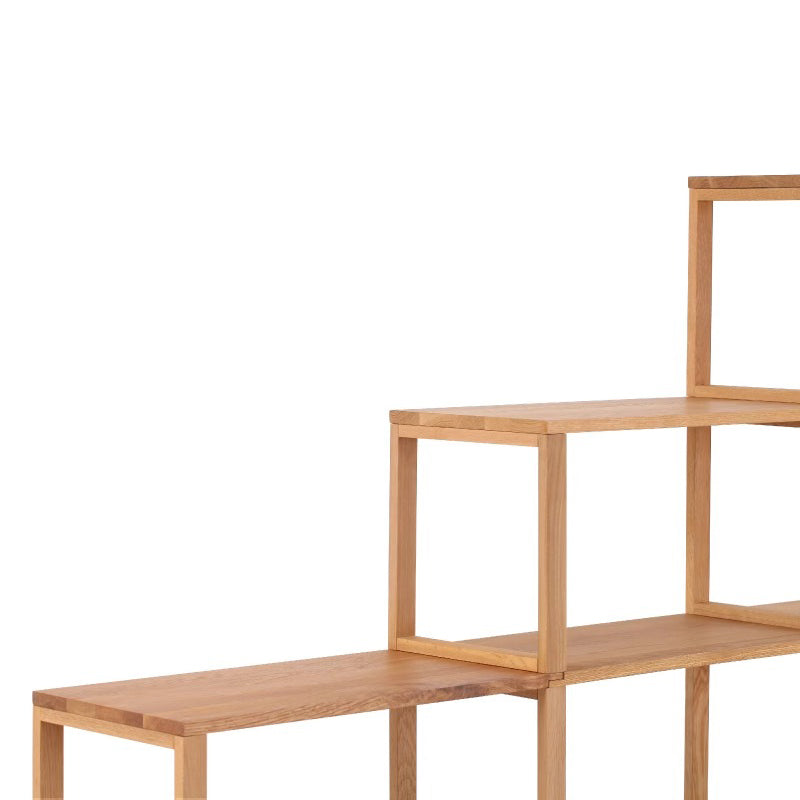 天然木ユニット式オープンラックは、アメリカ産ホワイトオークFAS級を使用し、堅牢な木質と淡い色合いが特徴です。シンプルなデザインでどんな空間にも調和しやすく、自由にカスタマイズ可能です。サイズや形状を自由に組み合わせることができ、収納スペースを最大限に活用できます。組み立て不要で、すぐに使用開始可能。リビングやオフィス、書斎など様々なシーンで活躍します。