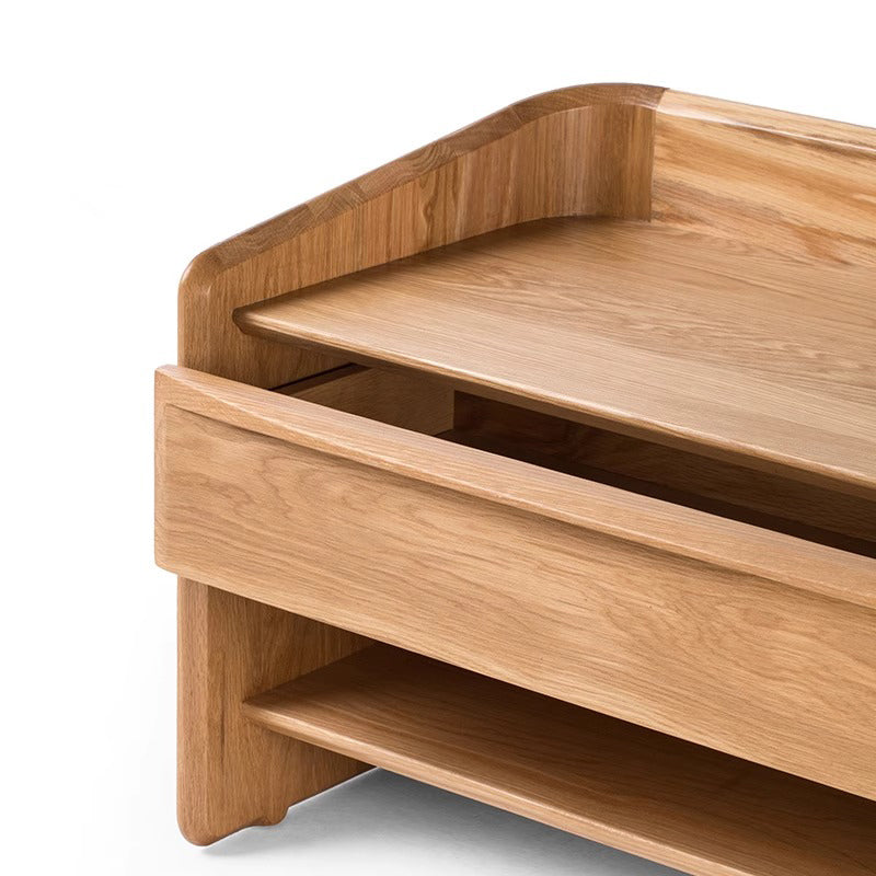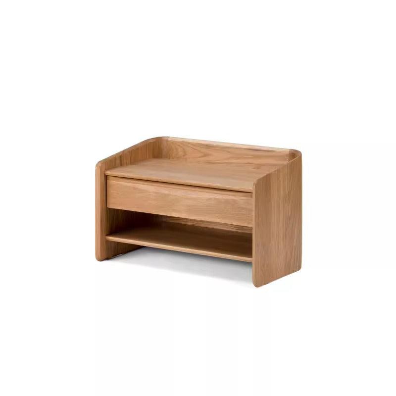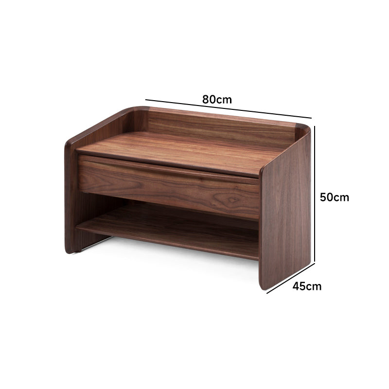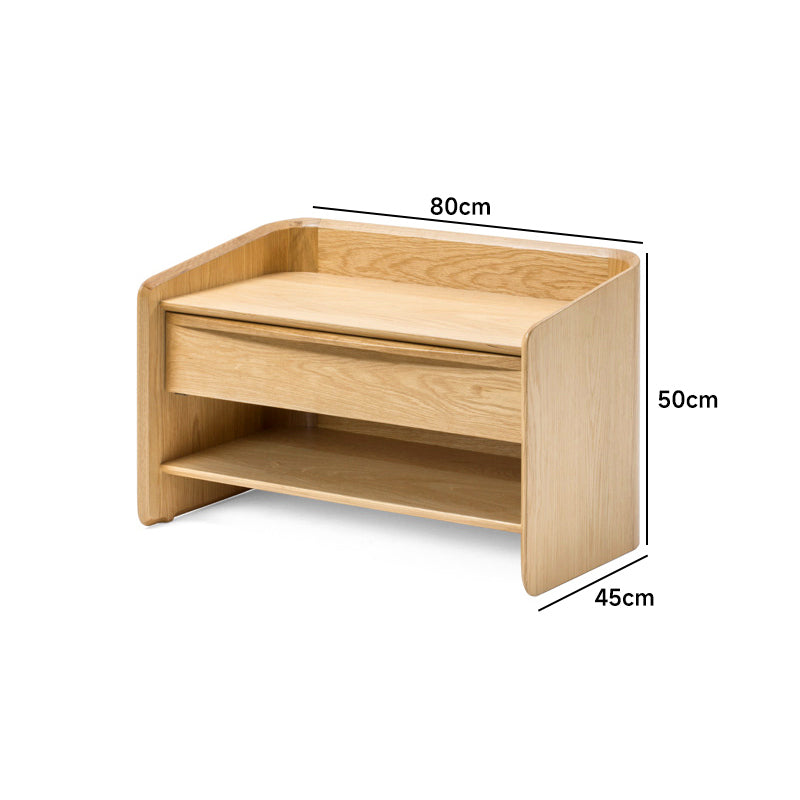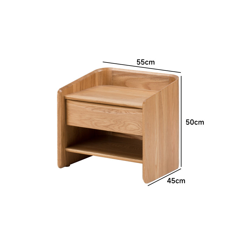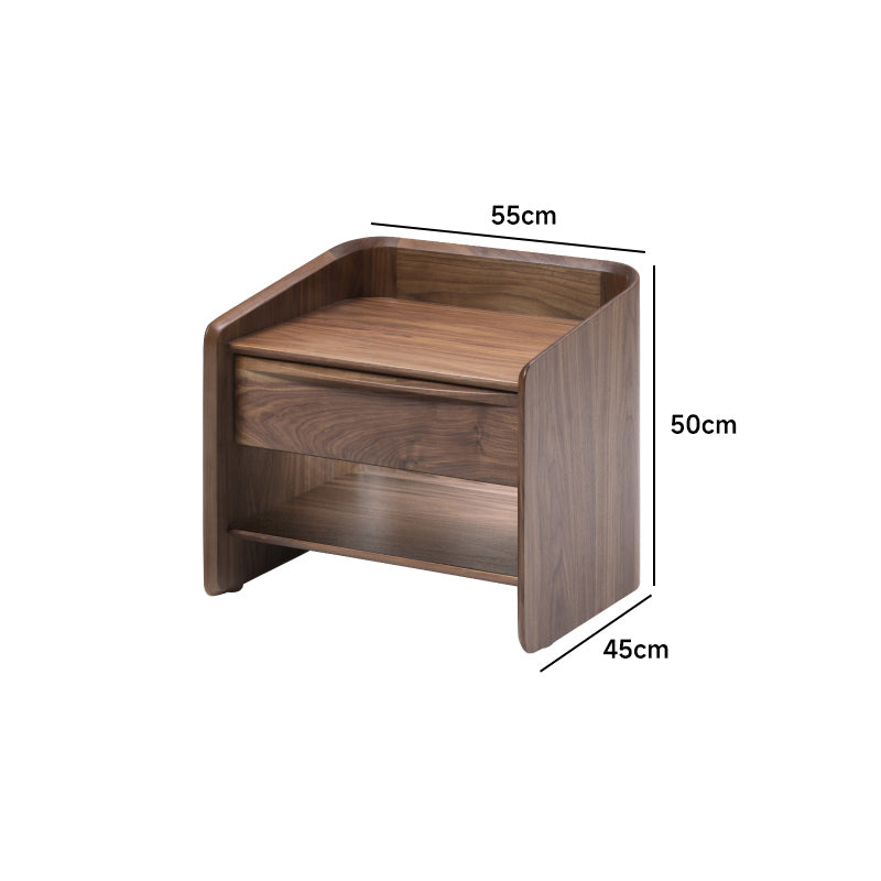 ラウンドデザインコンパクトナイトテーブルは、機能性と美しさを兼ね備えたデザインが特徴です。丸みを帯びたデザインが空間を優しく包み込み、心地よい印象を与えます。ブラックウォールナット、ホワイトオーク、ホワイトオーク/スターブラックの3種類の高品質な木材を使用し、幅55cmまたは80cm、奥行き45cm、高さ50cmのコンパクトサイズで、十分な収納スペースを提供します。組み立て不要で、すぐに使用可能。どんなインテリアにもマッチし、空間の雰囲気を変えることができます。