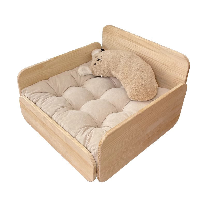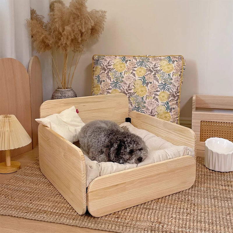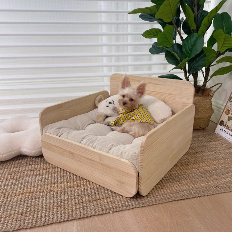 クッション付き木製ペットベッド