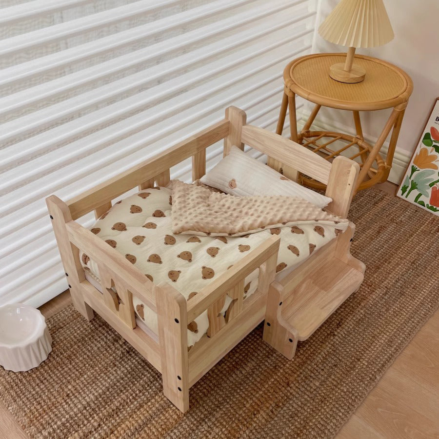 カントリースタイルペット用ベッドは、天然木材を使用し、耐久性と自然な美しさを兼ね備えたデザインが特徴です。MサイズとLサイズがあり、ペットの大きさに合わせて選べます。シンプルで温かみのあるデザインはどんなインテリアにもマッチし、サイドラダータイプとフットラダータイプの2種類から選べます。柔らかいクッション付きで、ペットに快適な寝心地を提供します。工具不要で簡単に組み立てられ、小型犬や猫に最適です。高い囲いで安全性も確保されており、リビングルームや寝室に置いてもおしゃれです。