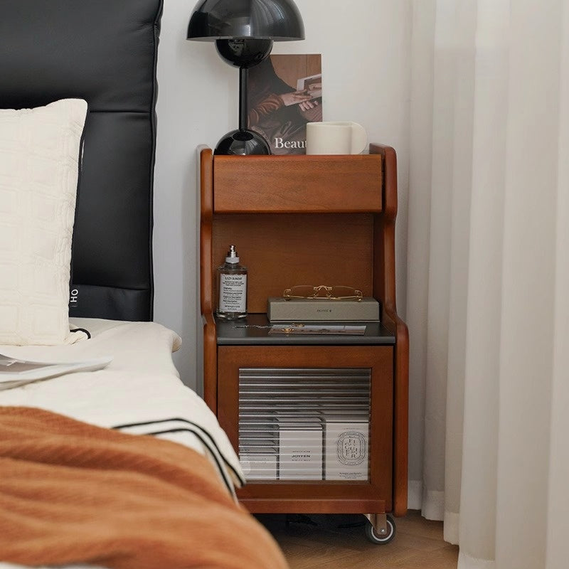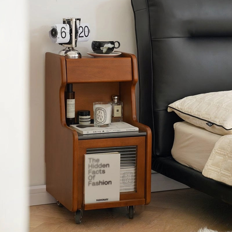 天然木コンパクトベッドサイドキャビネットは、上質なツゲ材を使用した高級木材シリーズの一部です。ブラウンの色合いがどんなインテリアにも自然に溶け込み、リビングや寝室に温かみを加えます。完成品として届くため、組み立ての手間がなく、すぐにお使いいただけます。キャスター付きのタイプもあり、掃除や配置換えが簡単に行えます。カップルやファミリーに最適で、どんなスタイルの部屋にも調和します。