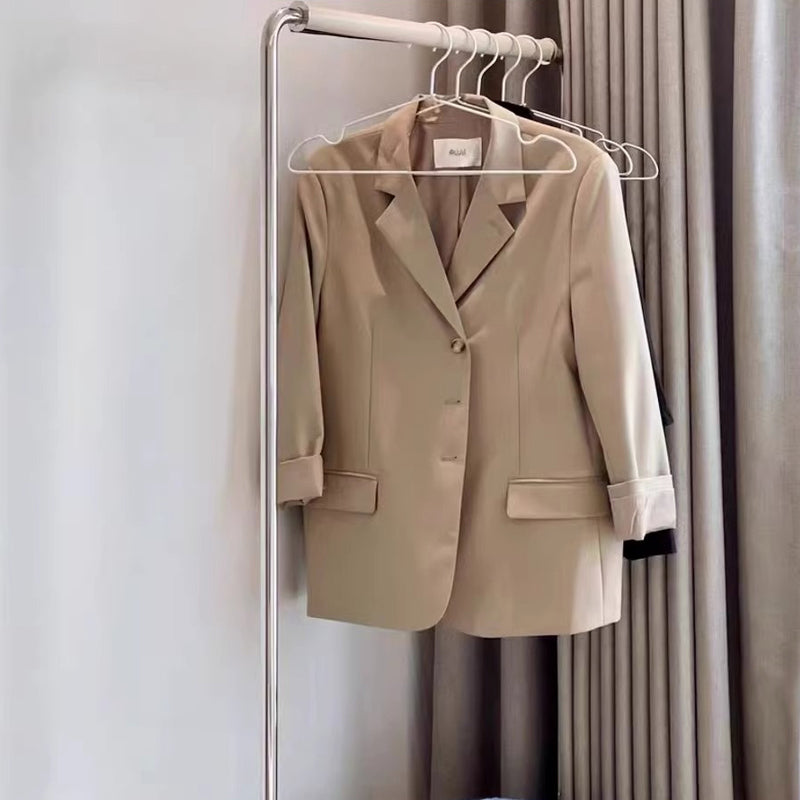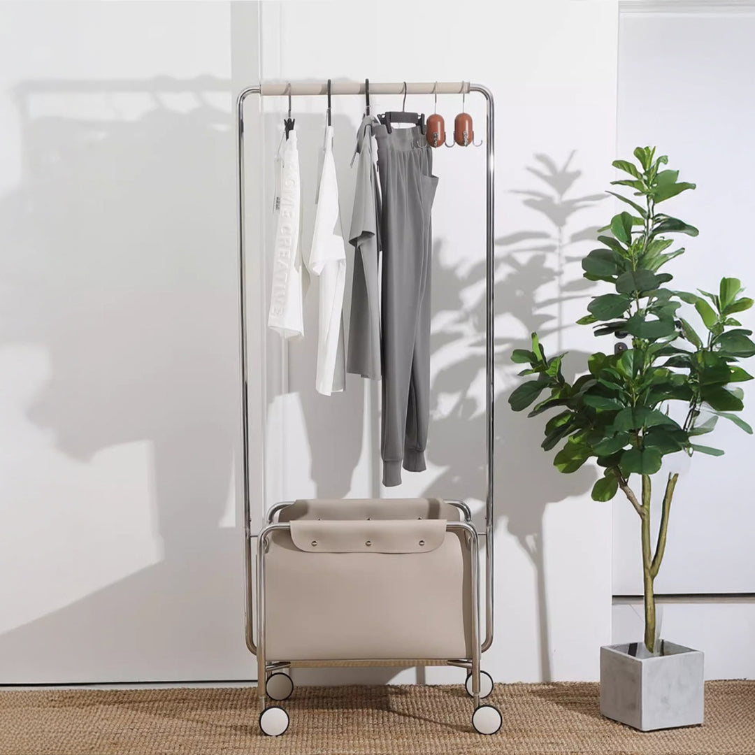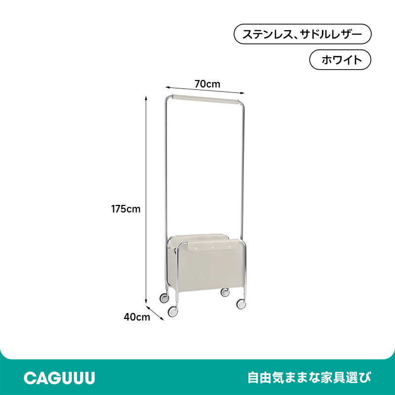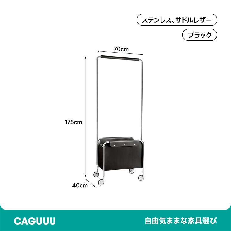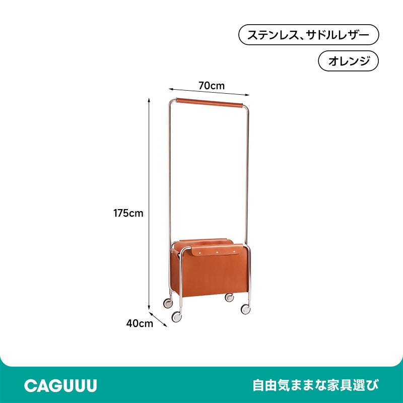 キャスター付きレザーハンガーラックは、スタイリッシュで機能的なデザインが特徴です。ステンレスとサドルレザーを使用し、高級感と耐久性を兼ね備えています。レトロモダンなデザインでどんなインテリアにもマッチ。サイズは70cm x 40cm x 175cmで、収納ボックス付きで大容量。静音キャスターで移動もスムーズ。耐荷重30kgで安心して使用可能。3WAYの使い方ができ、柔軟な使用が可能です。厚さ2.8mmのサドルレザーを手作業で丁寧に仕上げ、金属製ハンガーバーで傷や汚れを防ぎます。