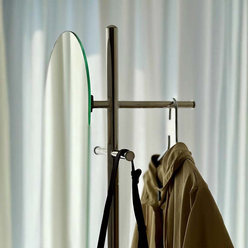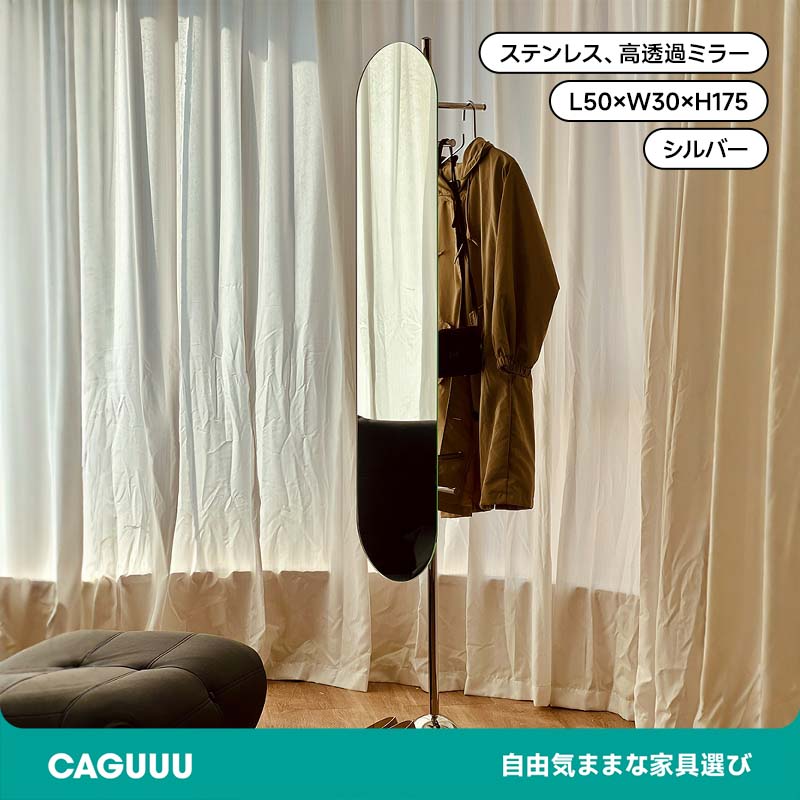 エレガントスタンドミラーは、スタイリッシュで機能的なデザインを持ち、クリアで歪みのない高品質ミラーを採用しています。高さ180cmのため、全身を美しく映し出すだけでなく、コートや帽子を掛けるハンガーラックとしても利用可能です。ステンレス製のスタンドが耐久性と安定性を提供し、丸みを帯びたデザインがどんなインテリアにもマッチします。狭いスペースでも有効活用でき、整理整頓に便利です。