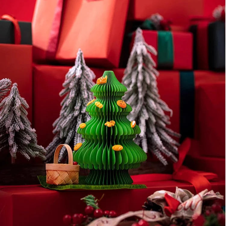 4タイプアートクリスマスツリーは、ユニークなアコーディオンデザインで、4つの異なるスタイルから選べるエレガントなデコレーションアイテムです。クラフト紙を使用し、環境にも優しい素材で作られており、防水加工が施されています。折りたたみ可能で収納も簡単。インテリア小物や店舗ディスプレイ、撮影小道具として最適で、繰り返し使用可能なサステナブルなデコレーションアイテムです。特別なギフトとしても最適で、どんなシーンにも合わせやすく、幻想的なクリスマス空間を演出します。