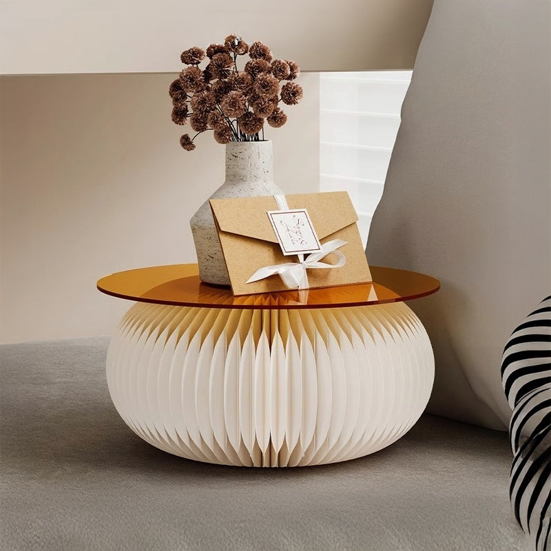 クラフト紙ドーナツテーブルは、シンプルでモダンなデザインが特徴のエコフレンドリーなテーブルです。リビングや一人暮らしの空間に最適で、グレー、ホワイト、オレンジのカラーバリエーションがあります。クラフト紙とアクリルで作られたこのテーブルは、折りたたみ式で簡単に組み立て・収納が可能。ハニカム構造により耐荷重10kgの安定感があり、防水加工も施されています。直径48cmと28cmの2サイズから選べ、どんなインテリアにもマッチします。