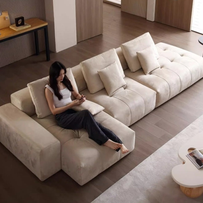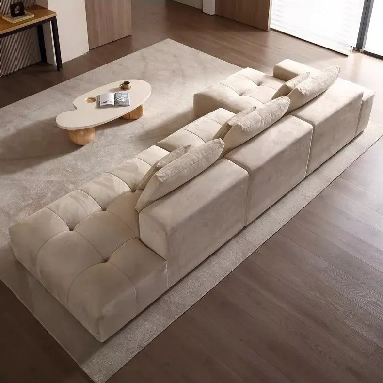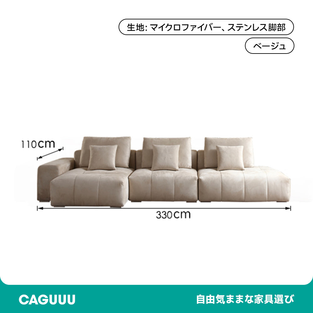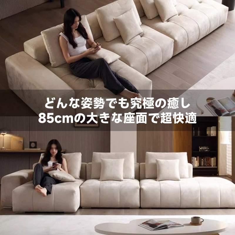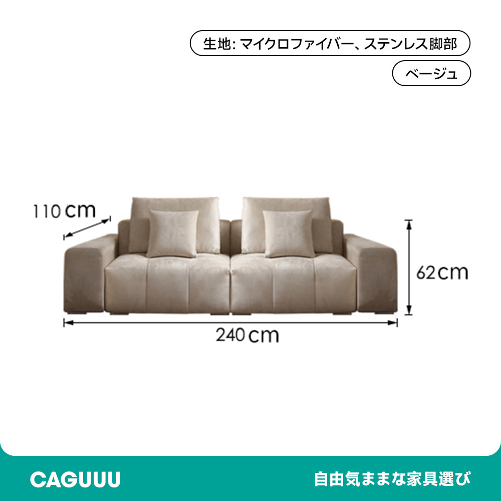 スエード調イタリアンモダンソファは、洗練されたデザインと極上の座り心地を提供する高品質な家具です。マイクロファイバー生地を使用し、耐久性、通気性、耐摩耗性に優れています。特殊起毛加工により、柔らかな手触りを実現し、ペットのいる家庭でも安心して使用可能です。ロシア産カラマツ材のフレームとSUS304ステンレス製の脚部がしっかりとした構造を提供し、快適なリラックスタイムをお楽しみいただけます。お部屋のスタイルに合わせて自由にカスタマイズ可能なこのソファは、モダンなインテリアに最適です。