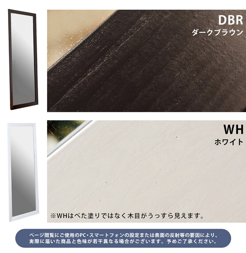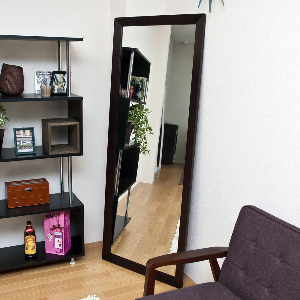 立てかけタイプ木製フレームジャンボミラーは、スタイリッシュで機能的なデザインが特徴です。幅55cm×高さ155cmの大きなサイズで全身を映し出し、木製フレームがナチュラルで温かみのある雰囲気を演出します。ダークブラウンとホワイトの2色展開で、どんなインテリアにもマッチ。簡単設置が可能で、転倒防止の金具も付属しており安全性も確保。シンプルで洗練されたデザインは、空間を広く見せる効果があり、毎日のコーディネートチェックに最適です。