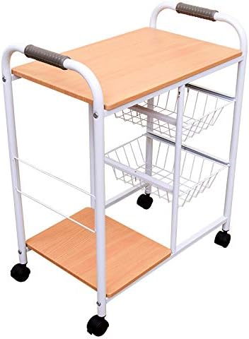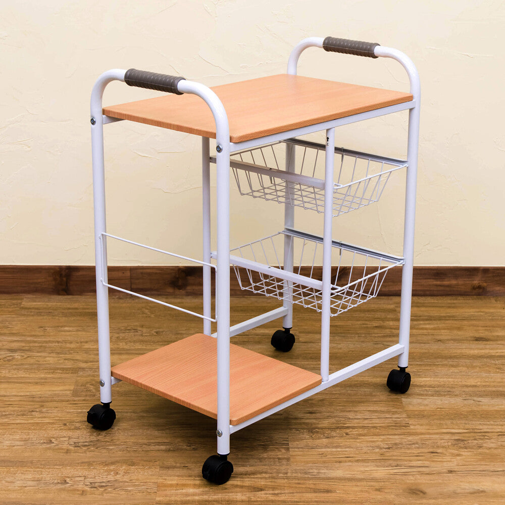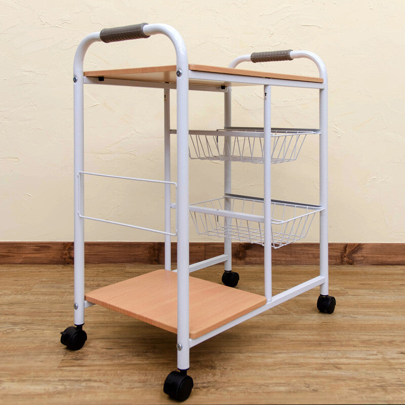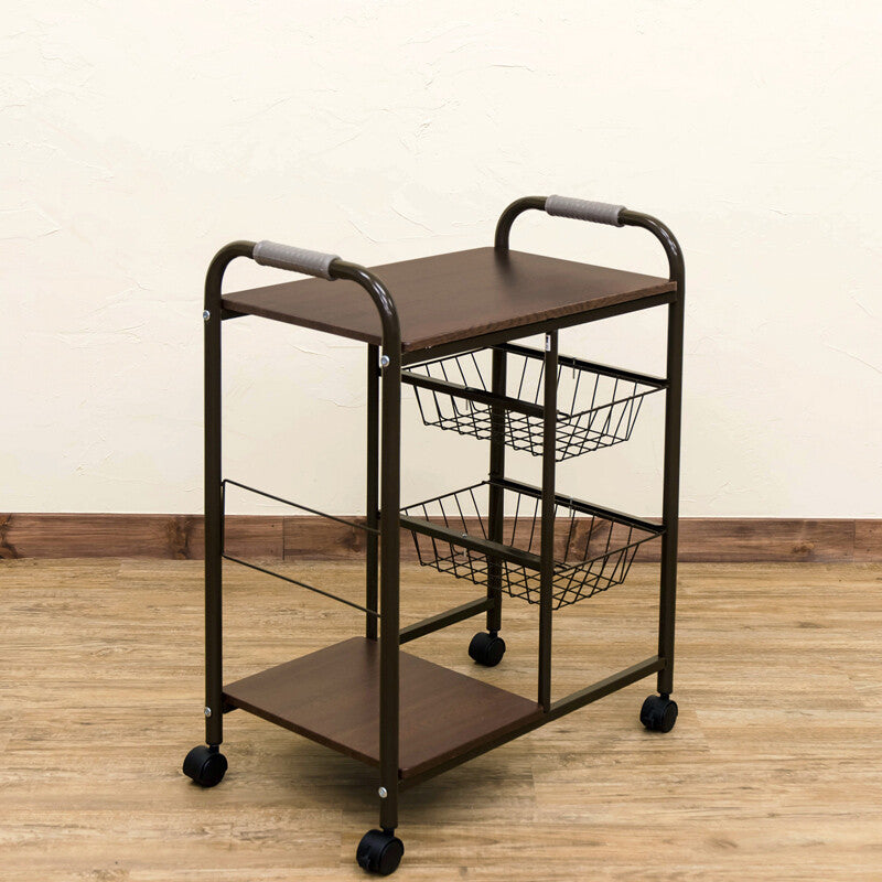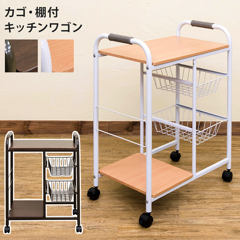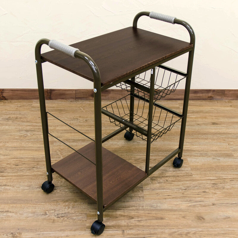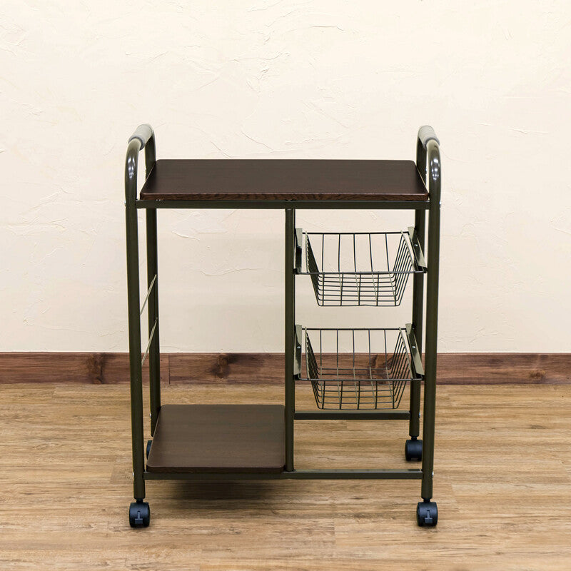 ベーシックデザインスチールフレームカゴ・棚付キッチンワゴン