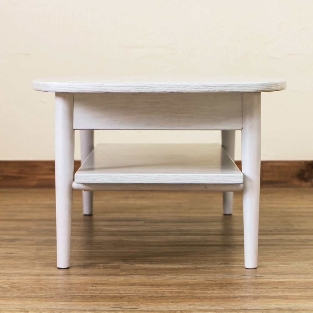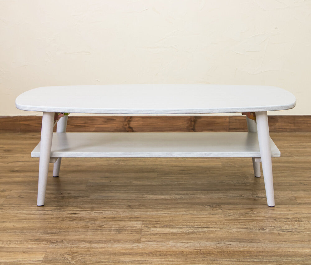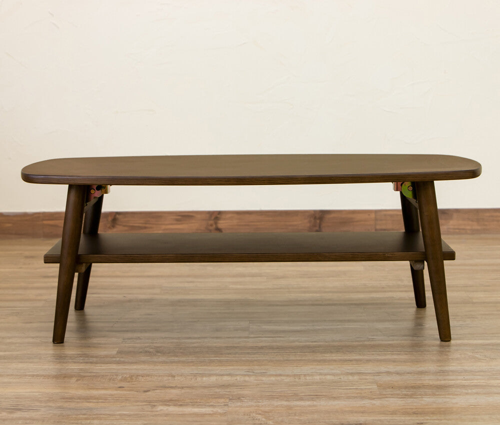 ナチュラル木製棚付き折れ脚ローテーブルは、シンプルで機能的なデザインが特徴の家具です。コンパクトな90cm x 50cmサイズで、リビングルームや和室に最適です。折れ脚機能により、使用しないときはコンパクトに収納可能。棚付きデザインで小物の収納にも便利です。ダークブラウン、ナチュラル、ホワイトウォッシュの3色展開で、どんなインテリアにもマッチします。高品質な木材を使用し、安定感があり安心して使用できます。機能性とデザイン性を兼ね備えたこのローテーブルは、日常使いに最適で、スタイリッシュな空間を演出します。
