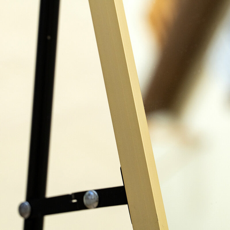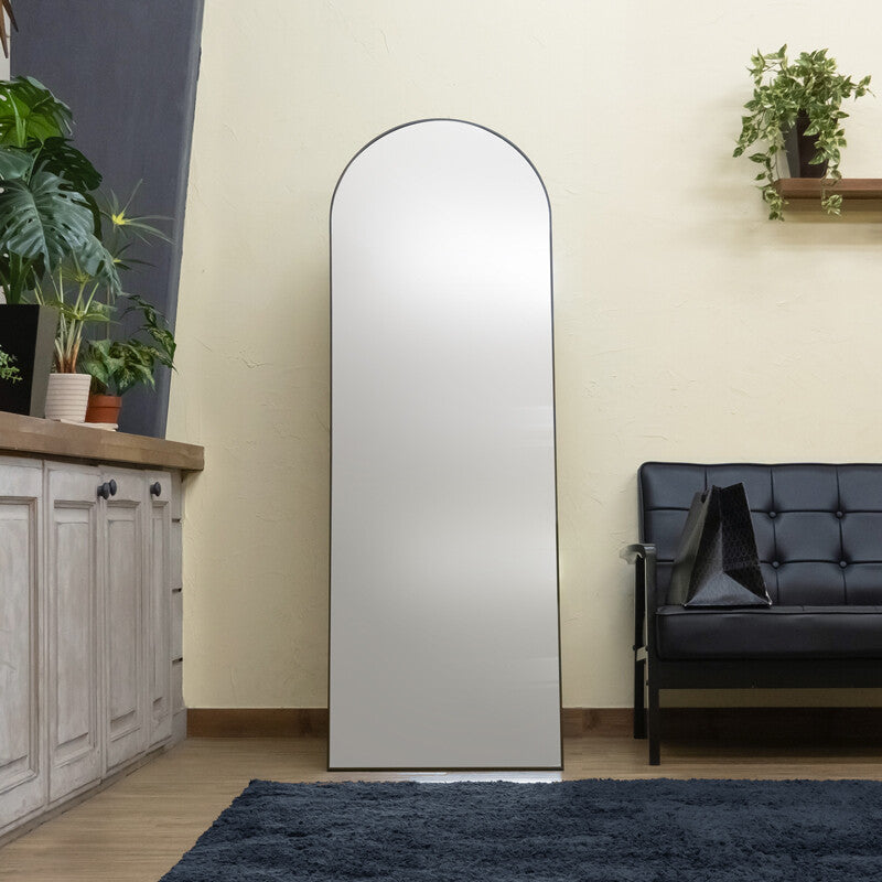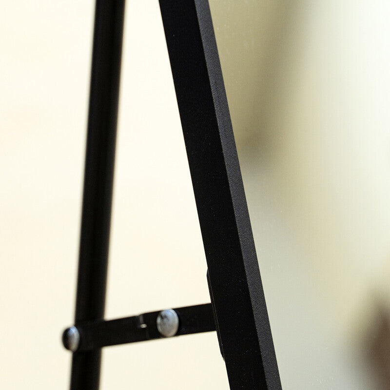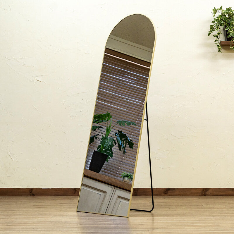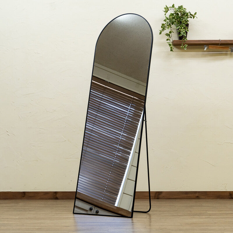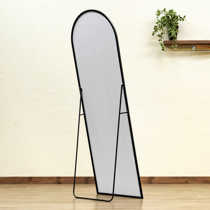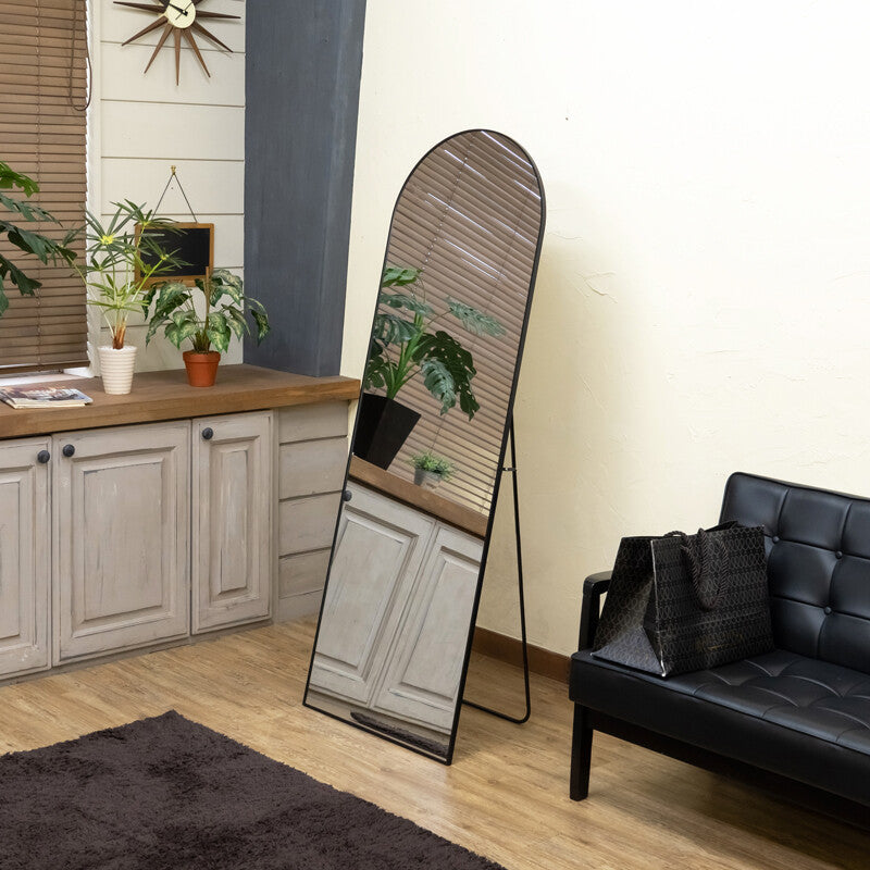 シンプルアルミフレームジャンボスタンドミラーは、洗練されたデザインと優れた耐久性を兼ね備えた全身鏡です。軽量なアルミフレームと飛散防止フィルムで安全性を確保し、マットブラックとシャンパンゴールドの2色展開でお部屋にマッチ。折りたたみ可能で収納も簡単、どんなインテリアにもフィットします。幅52.5cm、高さ161.5cmの大きなサイズで全身をしっかり映し出します。