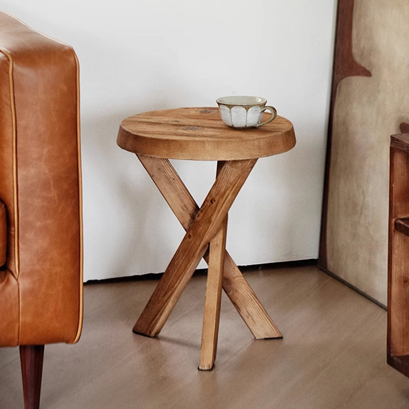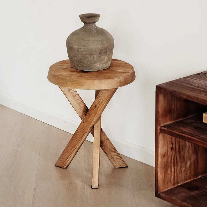 アンティーククロス脚サイドテーブルは、オールドパイン材を使用した手作りの逸品です。職人による丁寧な仕上げが施され、滑らかなエッジと厚みのある天板が特徴です。天板の直径は35cm、高さは47cmで、コンパクトながらも存在感のあるデザインが魅力です。クロス脚デザインと環境に優しい水性塗料を使用し、撥水・防汚効果も抜群です。どんなインテリアにも馴染み、あなたの暮らしに温かみを加えます。