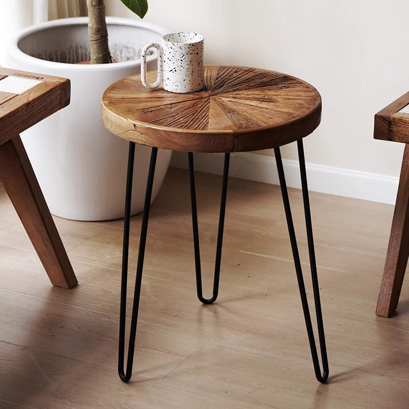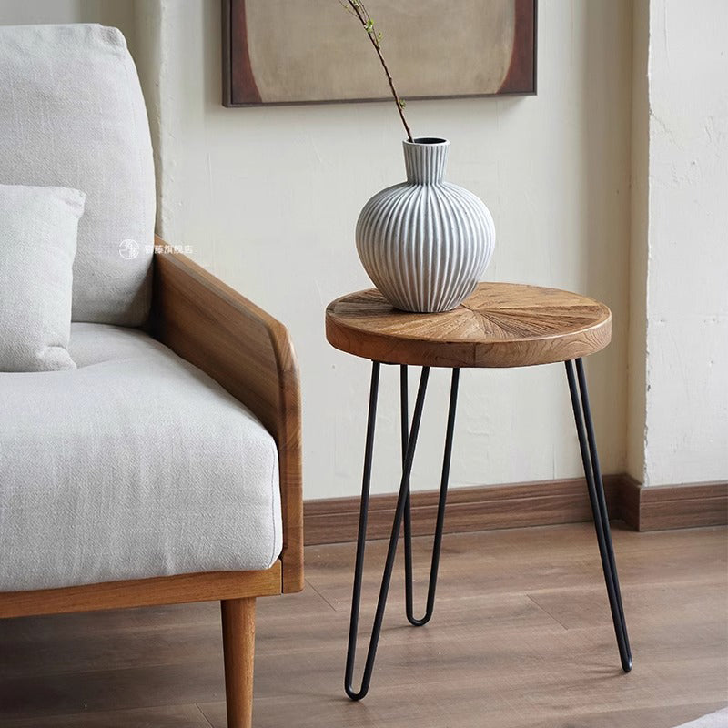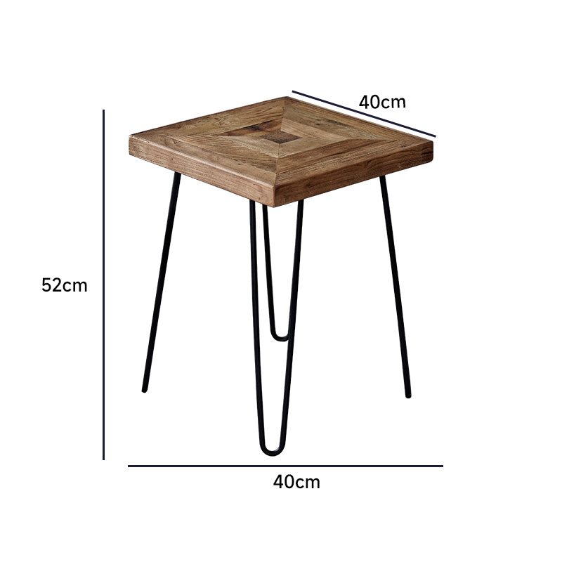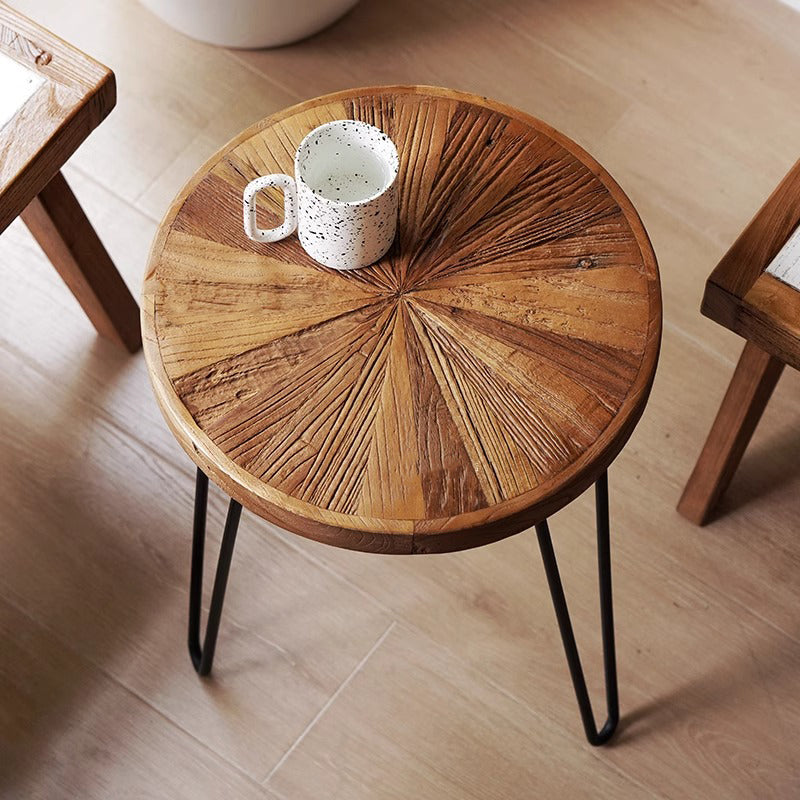 アンティークパッチワーク風サイドテーブルは、オールドエルム材を使用した手作りの逸品です。自然なひび割れや節が素材の特徴として活かされ、独特の風合いを持っています。鉄製の脚がしっかりとした安定感を提供し、デザイン性と実用性を兼ね備えています。パッチワーク風の天板はどんなインテリアにもマッチし、環境に優しい水性塗料を使用して安全性も考慮されています。コンパクトなサイズでどんな場所にもフィットしやすく、移動も簡単です。リビングルームやベッドサイドに最適で、シンプルながらもスタイリッシュな空間を演出します。