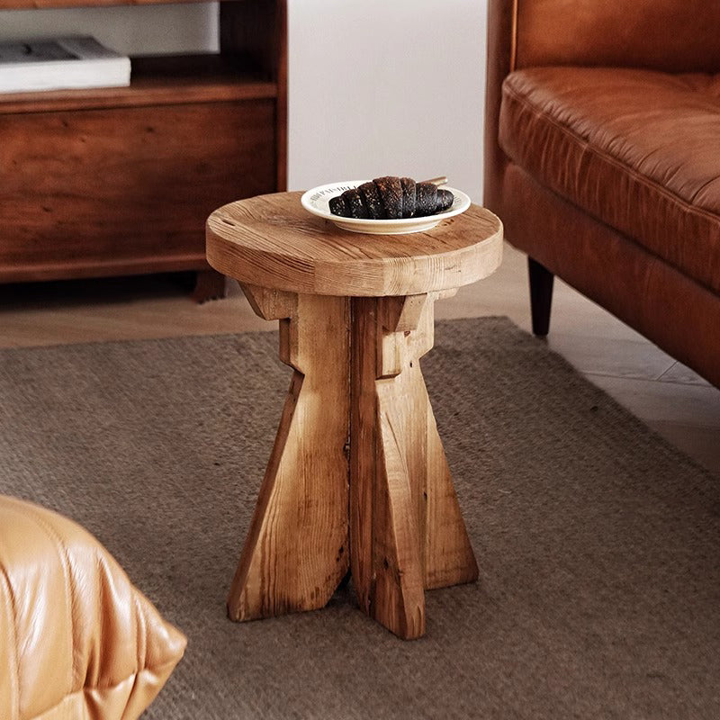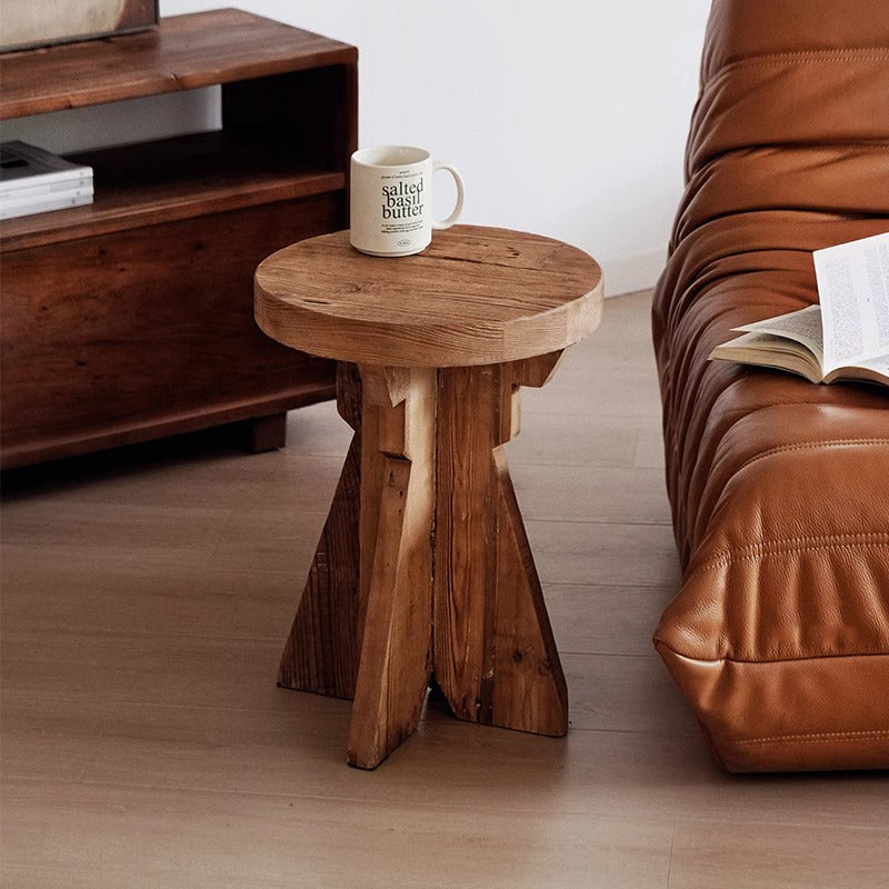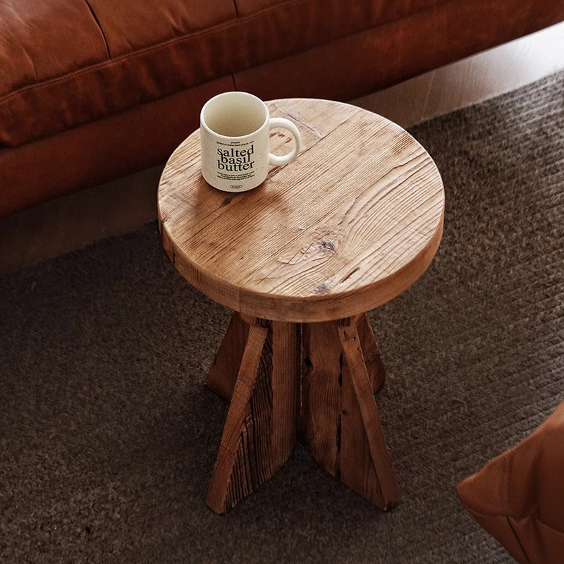 天然木デザインサイドテーブルは、オールドパイン材を使用した100%手作りの高品質家具です。丸みを帯びたエッジ加工と滑らかな手触りが特徴で、耐久性も抜群。滑り止め付きの丈夫な脚部で安定した構造を実現し、床のキズ防止にも役立ちます。環境に優しい水性ニス仕上げで安全性も確保。直径35cm、高さ47cmのコンパクトサイズで、リビングや寝室のアクセントに最適です。自然な木目が美しく、どんなインテリアにもマッチします。