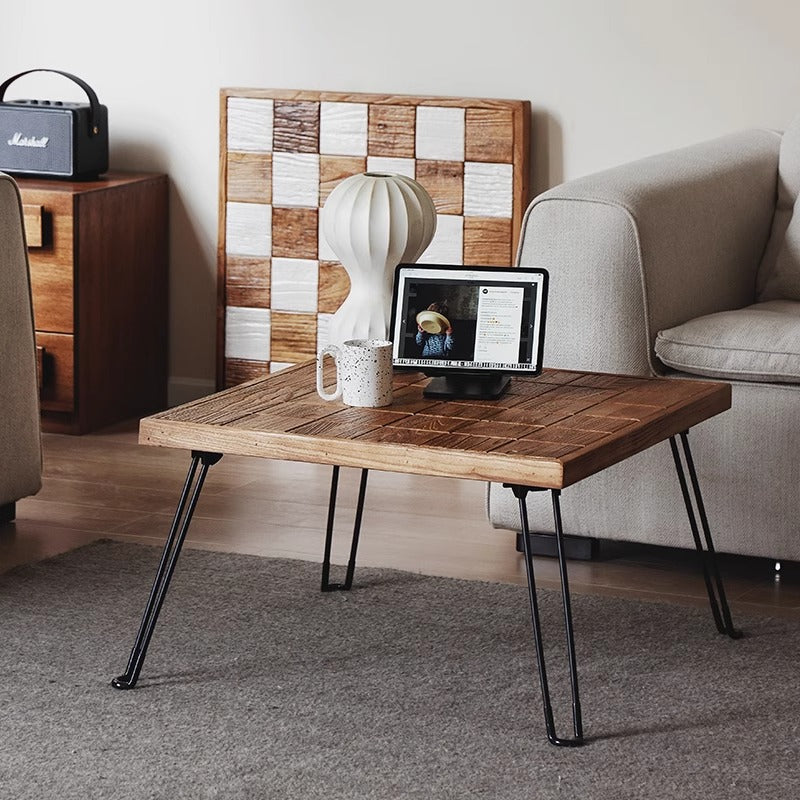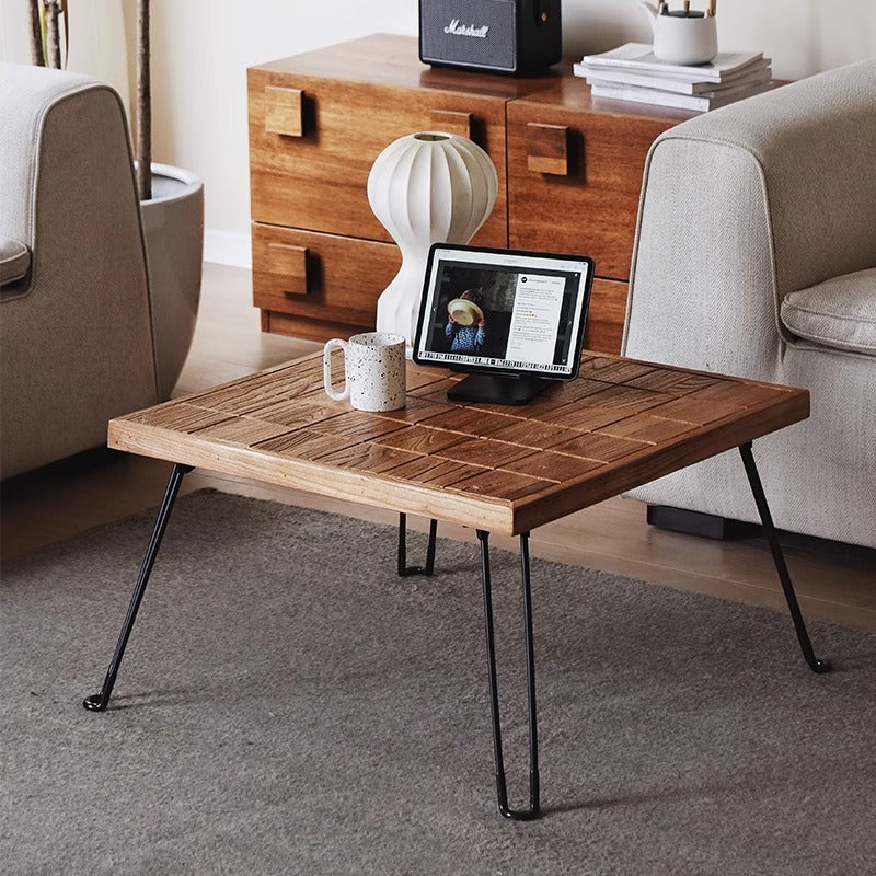 天然木折りたたみテーブルは、自然の美しさを最大限に生かしたデザインが特徴です。古いニレ材を使用し、木目の美しさが際立つ一品です。手作業で丁寧に仕上げられており、木材の魅力を活かした作りが特長です。湿気と乾燥に強く、長期間の使用にも耐えるニレ古材を使用し、モダンなナチュラルカラーでどんなインテリアにもマッチします。コンパクトで使いやすいサイズで、軽量で移動が簡単。木材用ワックスオイルで仕上げており、防水・防汚効果があります。職人の技と情熱が込められた逸品で、どんな空間にも自然な温かみを加えることができます。