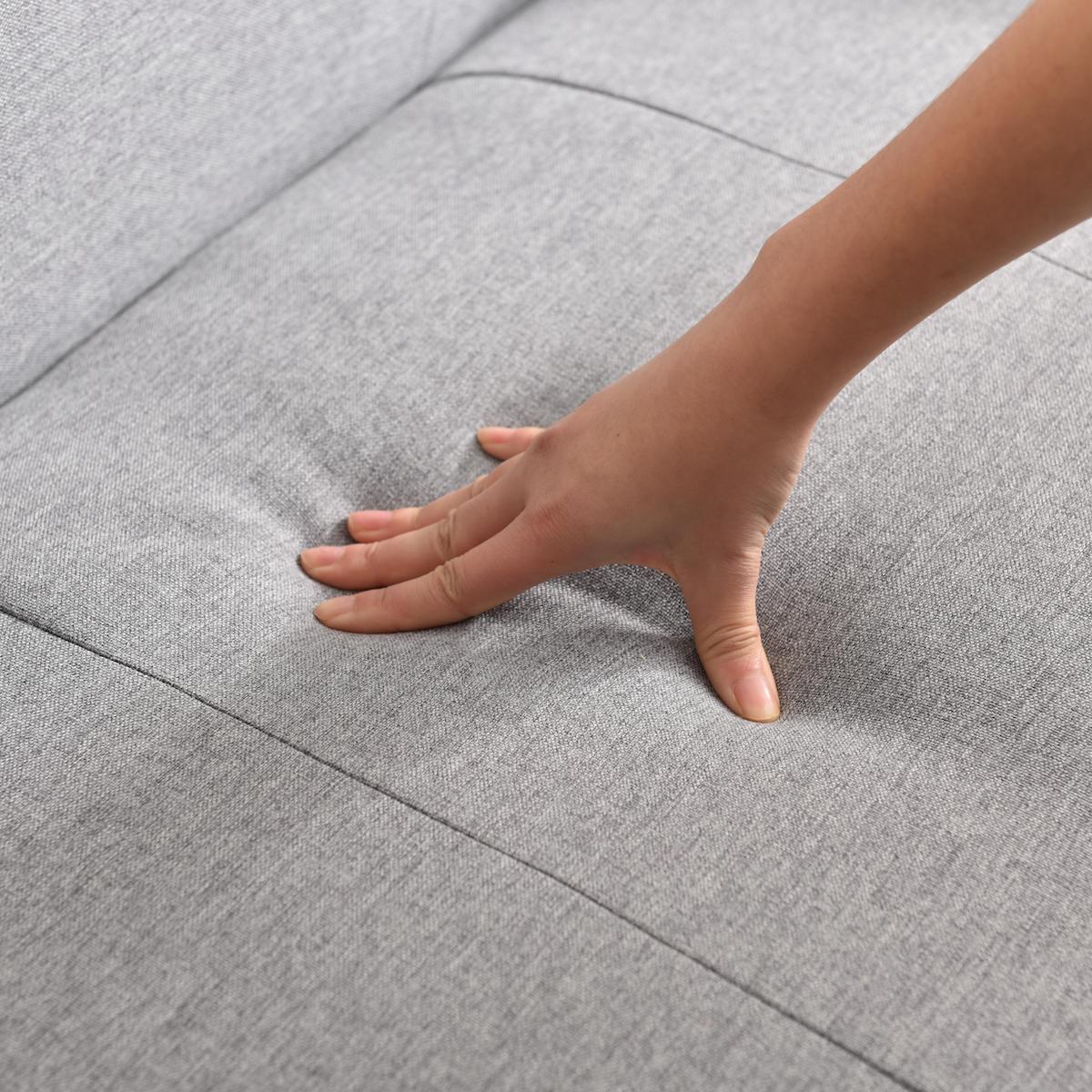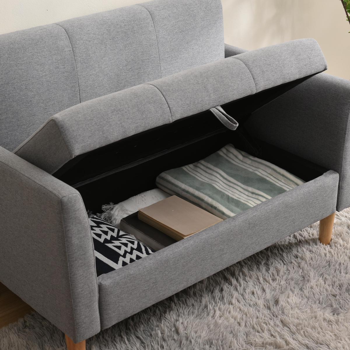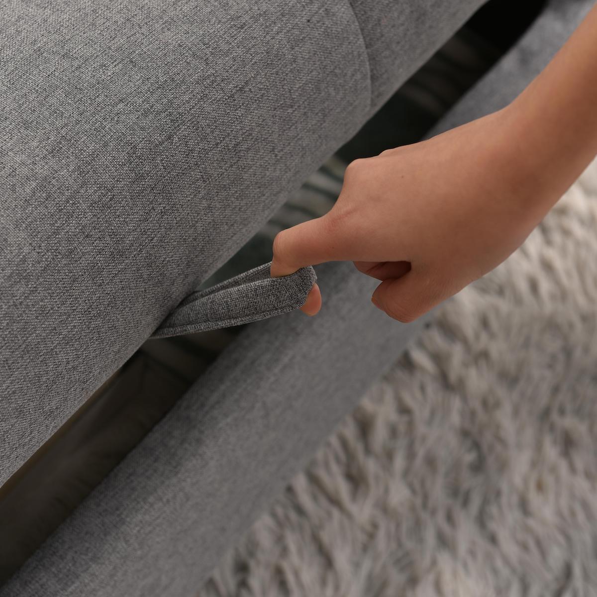 収納付き2人掛けソファーベッドは、機能性とデザイン性を兼ね備えた理想的な家具です。座面下の収納スペースでブランケットや雑誌をすっきりと整理でき、取っ手付きで簡単に開閉可能です。少し硬めのクッションで快適な座り心地を提供し、長時間座っても疲れにくい設計です。取り外し可能な脚は、掃除の際にも便利で、傷防止フェルト付きで床を守ります。幅1060mm、奥行き620mm、高さ755mmのサイズで、グレー、ブルー、グリーン、ブラウン、アイボリーの5色展開。限られたスペースを有効活用したい方やスタイリッシュなインテリアを求める方に最適です。