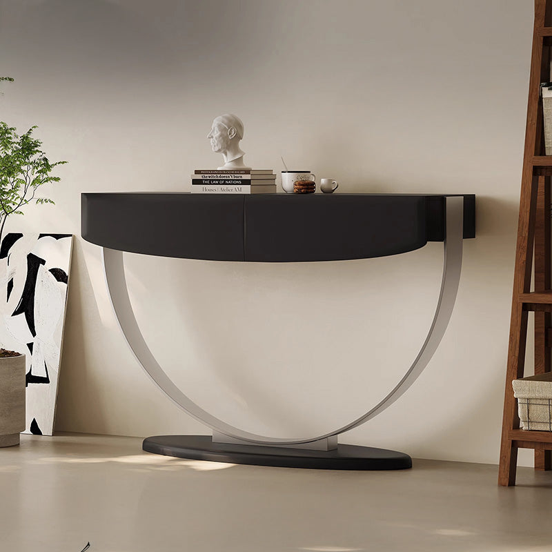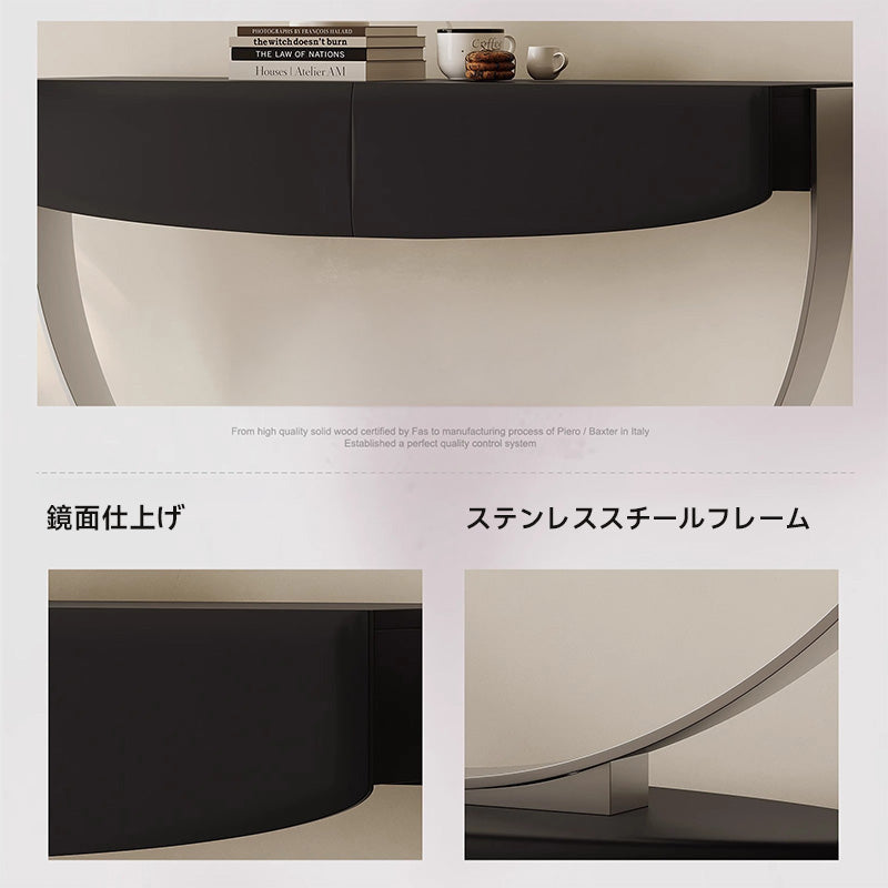 半円形レトロサイドテーブルは、洗練されたデザインと機能性を兼ね備えた一品です。コンパクトながらも十分な収納スペースを提供し、どんなインテリアにも調和するユニークなデザインが特徴です。高級感を演出する鏡面仕上げの天然木合板と耐久性に優れたステンレススチールフレームを使用し、長期間使用しても美しさを保ちます。リビングやエントランスでの多用途な使用が可能で、日常生活にアートを取り入れたい方に最適です。