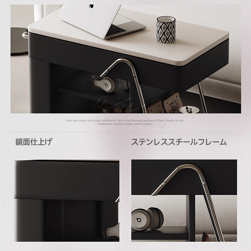 キャスター付き多機能コーヒーテーブルは、モダンなデザインと高い機能性を兼ね備えた理想的な選択です。コンパクトなサイズでありながら十分な作業スペースを提供し、ミラーフィニッシュの天板が高級感を演出します。環境に優しいE0級エコボードと頑丈なステンレススチールフレームを使用し、アルミ合金キャスターで移動も簡単。リビングルームやオフィスでの使用に最適で、収納スペースも完備。どんなインテリアにもマッチし、日常生活にスタイルと機能性をプラスします。