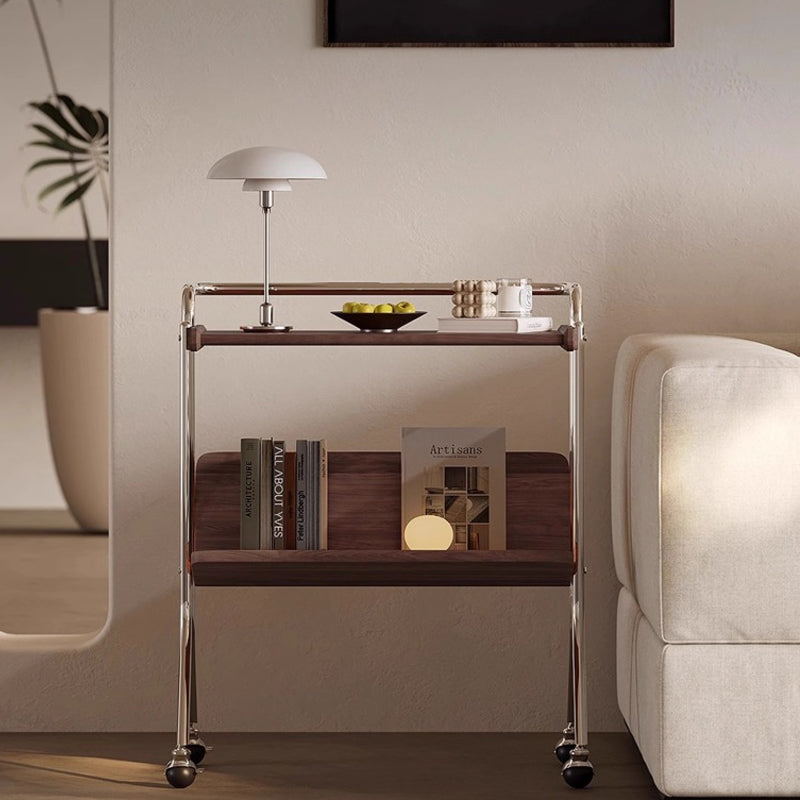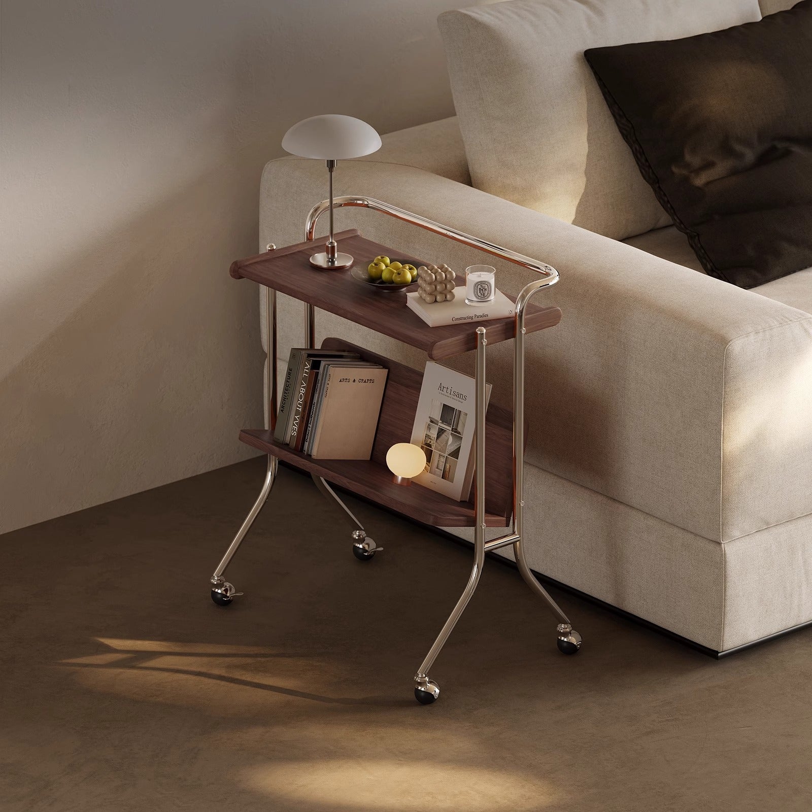 可動式スリムサイドワゴンは、北米産FAS級ブラックウォールナット樹皮とE0級天然木積層合板を使用した高品質な家具です。幅68cm、奥行35cm、高さ70cmのコンパクトサイズで、狭いスペースにも最適。ステンレススチール製フレームとアルミ合金製キャスターで、頑丈かつスムーズな移動が可能。リビングルームやオフィス、キッチンなど多用途に活躍し、上段と下段の2層構造で収納力も抜群です。デザイン性と機能性を兼ね備えたこのワゴンは、どんなインテリアにもマッチします。