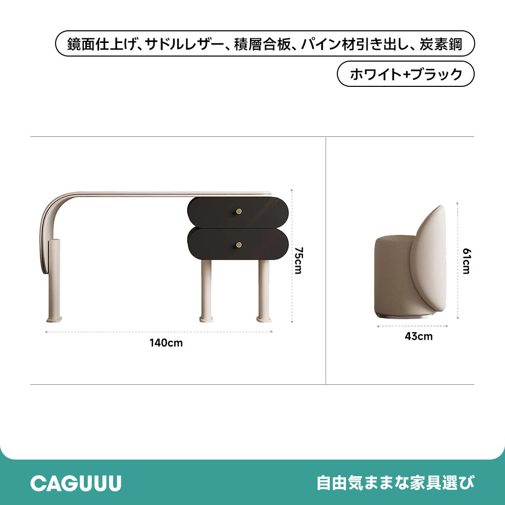 モダンフレンチレザードレッサーは、サドルレザーと天然木化粧合板を使用した高級感あふれるデザインが特徴です。耐久性に優れた素材と精巧な作りで、リビングや寝室に最適な選択です。幅は100cm、120cm、140cmから選べ、奥行き45cm、高さ75cmのサイズ展開。ホワイトとブラックのカラーがどんなインテリアにもマッチし、簡単なお手入れで常に清潔で美しい状態を保てます。機能性とスタイルを兼ね備えたこのドレッサーは、日常生活に優雅さを加える理想的なアイテムです。