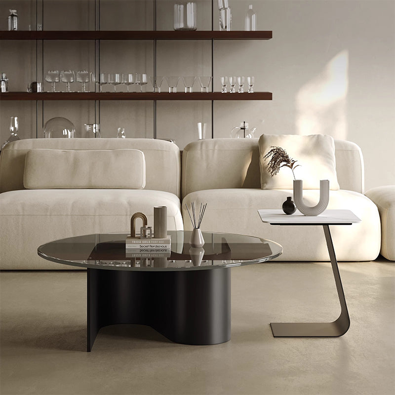 イタリアンモダンガラステーブルセットは、リビングルームにモダンでエレガントな雰囲気を加えるために設計された洗練されたデザインの家具です。高強度強化ガラスとカーボンスチールフレームを組み合わせたこのセットは、耐久性と美しさを兼ね備えています。サイズはローテーブル直径100cm、高さ35cm、サイドテーブル40cm x 40cm、高さ48cmで、どんなインテリアにも調和します。イタリアのデザインと品質を反映し、リビングルームをより魅力的で機能的にするための完璧な選択です。
