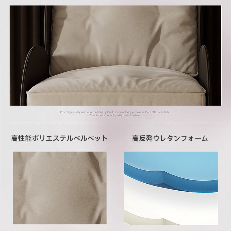 イタリアンモダンベルベット調パーソナルチェアは、洗練されたデザインと高級感あふれる素材が特徴です。高性能ポリエステルベルベットを使用し、快適性と耐久性を兼ね備えています。人間工学に基づいた高反発ウレタンフォームで、体をしっかりサポート。ヨーロッパ産ブナ材フレームとブラックチタン加工ステンレスフレームで、スタイリッシュな外観と堅牢な構造を実現。リビングや書斎に高級感をプラスします。