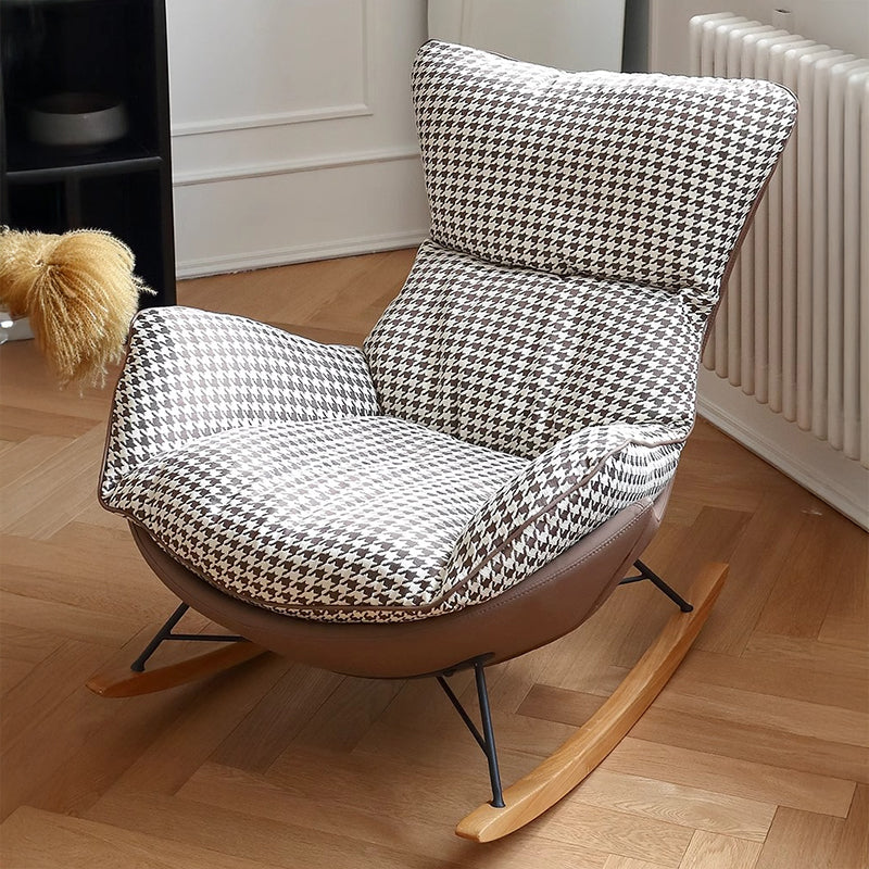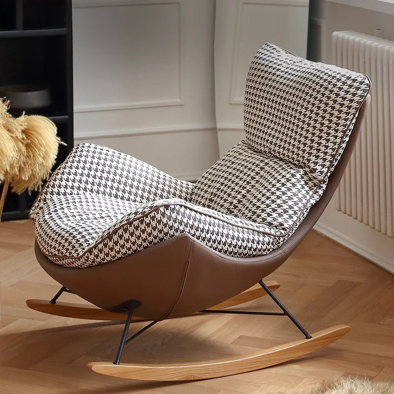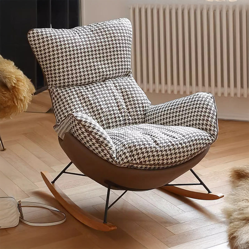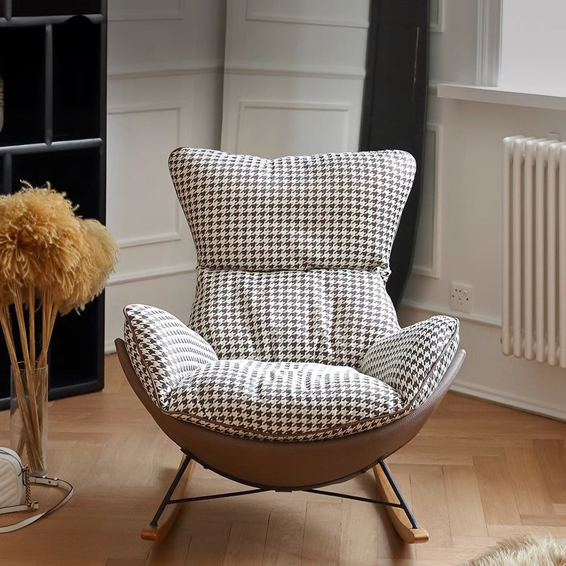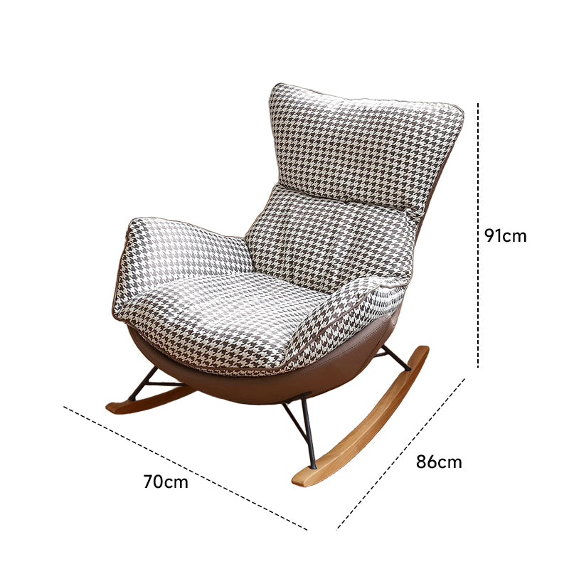 千鳥柄ロッキングチェアは、クラシックなデザインと快適な座り心地を提供します。コットンリネン生地とPUレザーを使用し、通気性と耐久性に優れた素材で作られています。カーボンスチールフレームとラバーウッドを使用し、高い耐久性と安定感を実現。人間工学に基づいた設計で、体に寄り添う快適さを追求しました。リビングルームや書斎にぴったりのスタイリッシュなデザインです。
