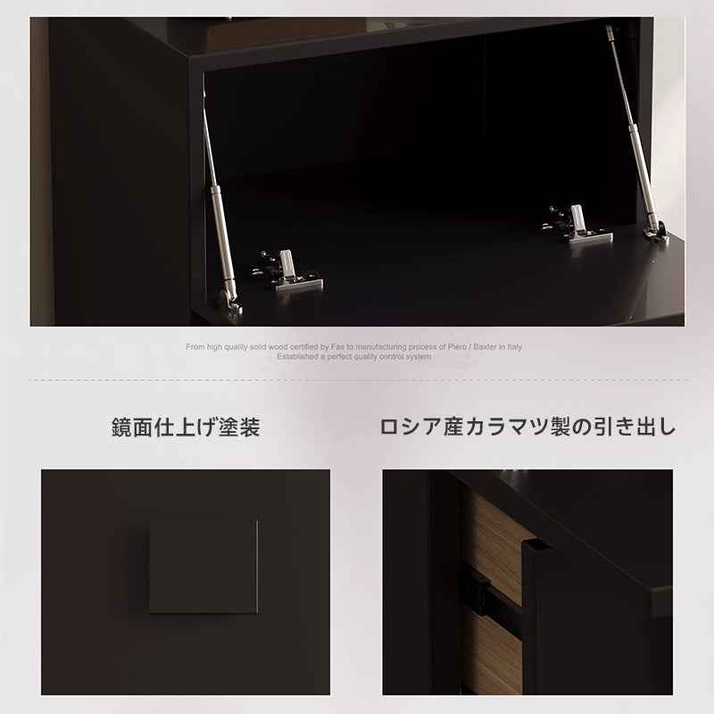 スリムブラックサイドボードは、洗練されたデザインと機能性を兼ね備えたモダンな家具です。幅58cm、奥行き40cm、高さ100cmのコンパクトなサイズながら、十分な収納スペースを提供します。高品質素材を使用し、表面は鏡面仕上げ塗装で滑らかで光沢のある仕上がりが特徴です。ロシア産カラマツ製の引き出しは耐久性とデザイン性を両立させ、エコボード使用で環境にも配慮しています。ソフトクローズ機能付きで静かでスムーズな開閉が可能。シンプルでスタイリッシュなデザインはどんなインテリアにもマッチし、リビングルームや寝室など様々なスペースで活用できます。