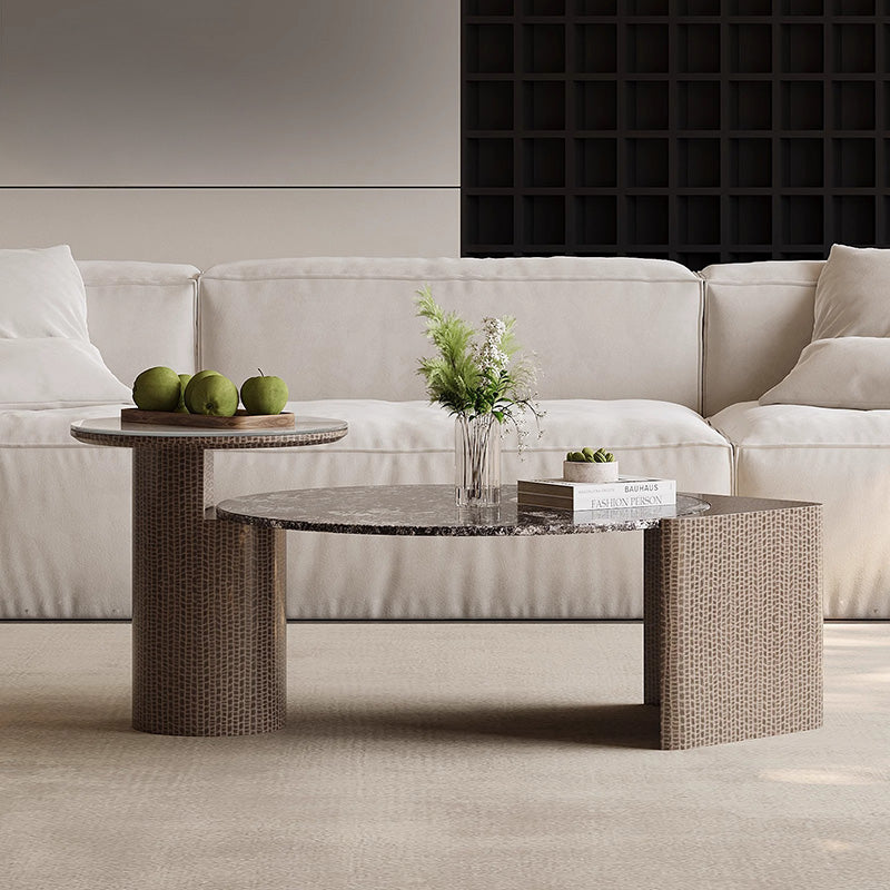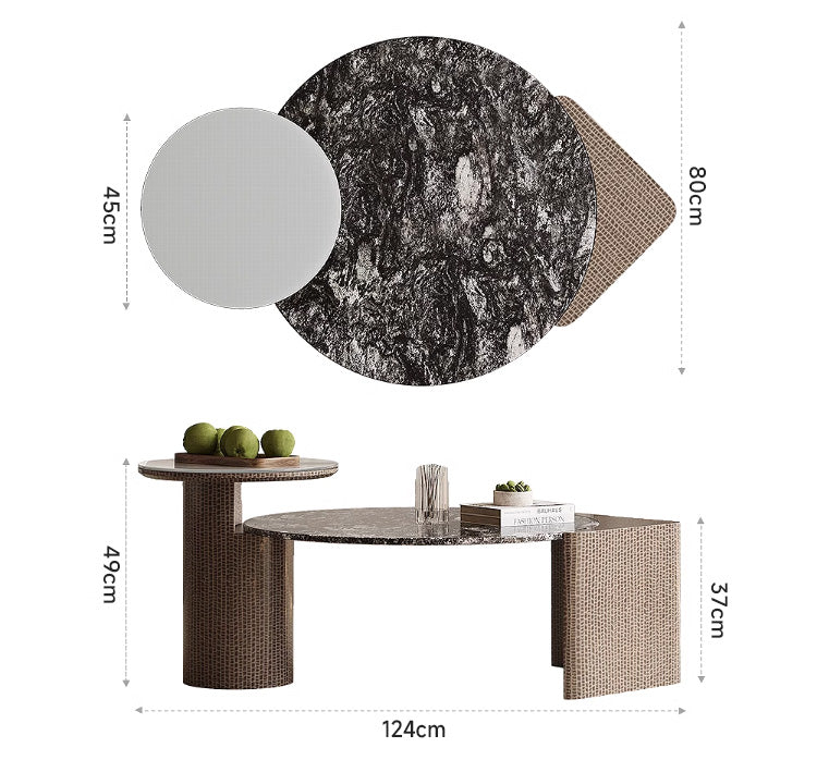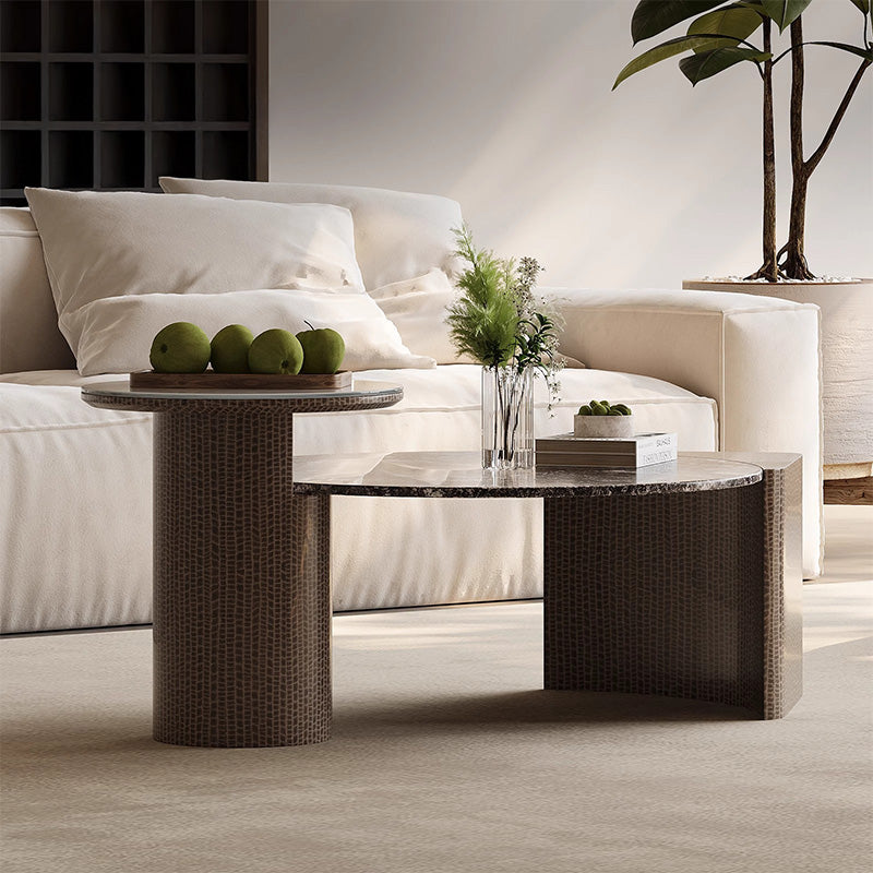 イタリアンモダン大理石調センターテーブルは、リビングルームにエレガントな雰囲気をもたらすデザインが特徴です。イタリア産の天然大理石を使用した高級感ある表面と、耐熱性と耐傷性に優れた高強度強化ガラスを組み合わせ、北米産FASグレードの突板化粧板で洗練された構造を実現しています。サイズは124cm x 80cm x 49cmで、どんなインテリアにもマッチするモダンなデザインが魅力です。視覚的な美しさと快適な使用感を提供し、高硬度の大理石は耐摩耗性に優れ、変形しにくい特性を持ちます。リビングルームの中心に置くことで、空間を引き立て、訪れる人々に洗練された印象を与えることができます。