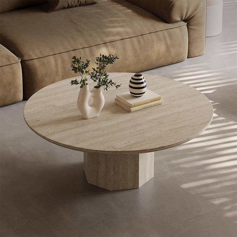 イタリアンモダントラバーチンセンターテーブルは、イタリア産の高品質な天然トラバーチンを使用し、美しい模様と質感を提供します。シンプルでモダンなデザインはどんなインテリアにもマッチし、5つのサイズバリエーションから選べます。頑丈な構造と耐久性に優れたこのテーブルは、リビングの主役として洗練されたライフスタイルを実現します。高温焼成とナノレベルの研磨技術で仕上げられたこのテーブルは、長く愛用できる一品です。