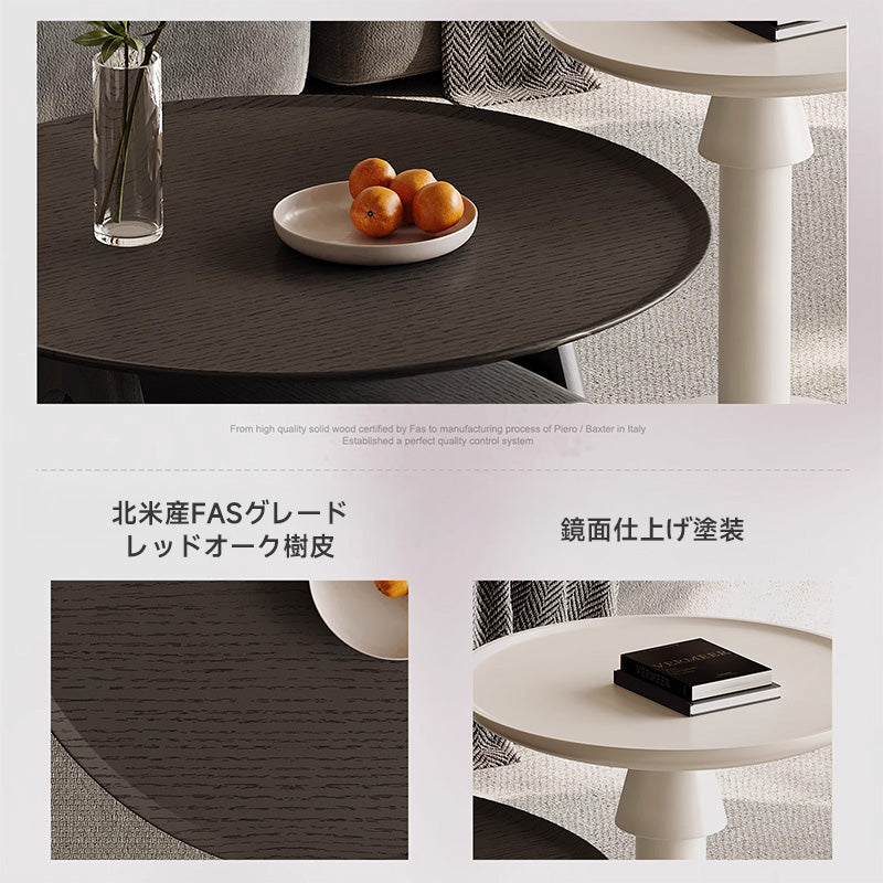 モノトーンラウンドセンターテーブルセットは、洗練されたデザインと機能性を兼ね備えた家具です。北米産FASグレードのレッドオーク樹皮を使用したセンターテーブルと、鏡面仕上げのサイドテーブルが含まれています。モノトーンの色合いがどんなインテリアにもマッチし、スタイリッシュな空間を演出します。傷や熱、腐食に強く、長く愛用できる設計で、お手入れも簡単です。リビングルームをより魅力的にし、快適な生活空間を提供します。